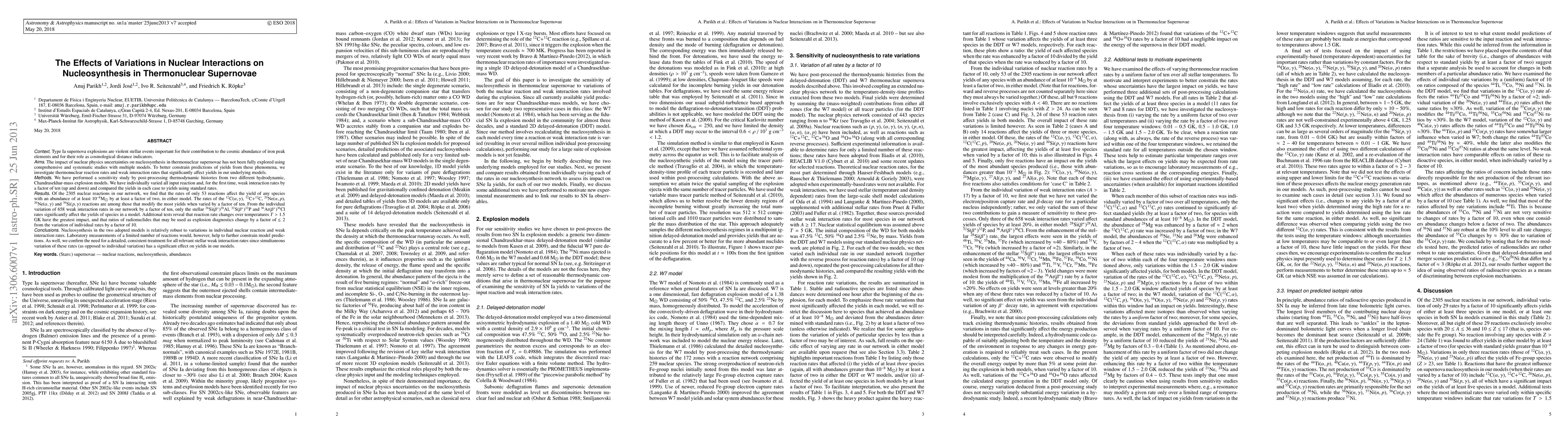 This study investigates the impact of nuclear reaction and weak interaction rate variations on nucleosynthesis in thermonuclear supernovae, revealing that only a small subset of reactions significantly affect yields. It finds that nucleosynthesis is relatively robust, with most yields changing by less than a factor of two when rates are varied by a factor of ten.