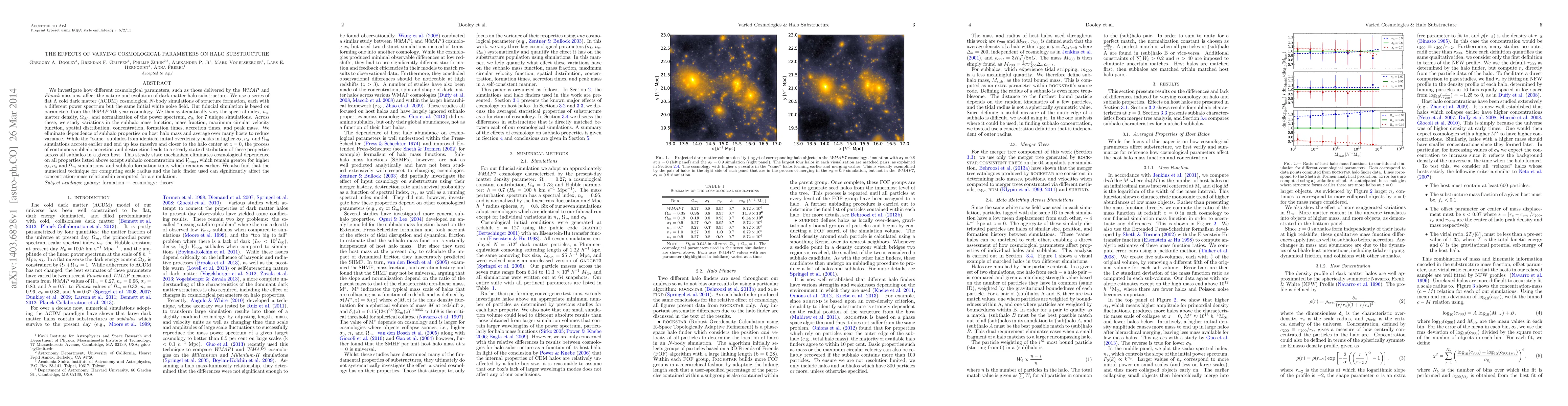 We investigate how different cosmological parameters, such as those delivered by the WMAP and Planck missions, affect the nature and evolution of dark matter halo substructure. We use a series of flat $\Lambda$ cold dark matter ($\Lambda$CDM) cosmological $N$-body simulations of structure formation, each with a different power spectrum but the same initial white noise field. Our fiducial simulation is based on parameters from the WMAP 7th year cosmology. We then systematically vary the spectral index, $n_s$, matter density, $\Omega_M$, and normalization of the power spectrum, $\sigma_8$, for 7 unique simulations. Across these, we study variations in the subhalo mass function, mass fraction, maximum circular velocity function, spatial distribution, concentration, formation times, accretion times, and peak mass. We eliminate dependence of subhalo properties on host halo mass and average over many hosts to reduce variance. While the "same" subhalos from identical initial overdensity peaks in higher $\sigma_8, n_s$, and $\Omega_m$ simulations accrete earlier and end up less massive and closer to the halo center at $z=0$, the process of continuous subhalo accretion and destruction leads to a steady state distribution of these properties across all subhalos in a given host. This steady state mechanism eliminates cosmological dependence on all properties listed above except subhalo concentration and $V_{max}$, which remain greater for higher $\sigma_8, n_s$ and $\Omega_m$ simulations, and subhalo formation time, which remains earlier. We also find that the numerical technique for computing scale radius and the halo finder used can significantly affect the concentration-mass relationship computed for a simulation.