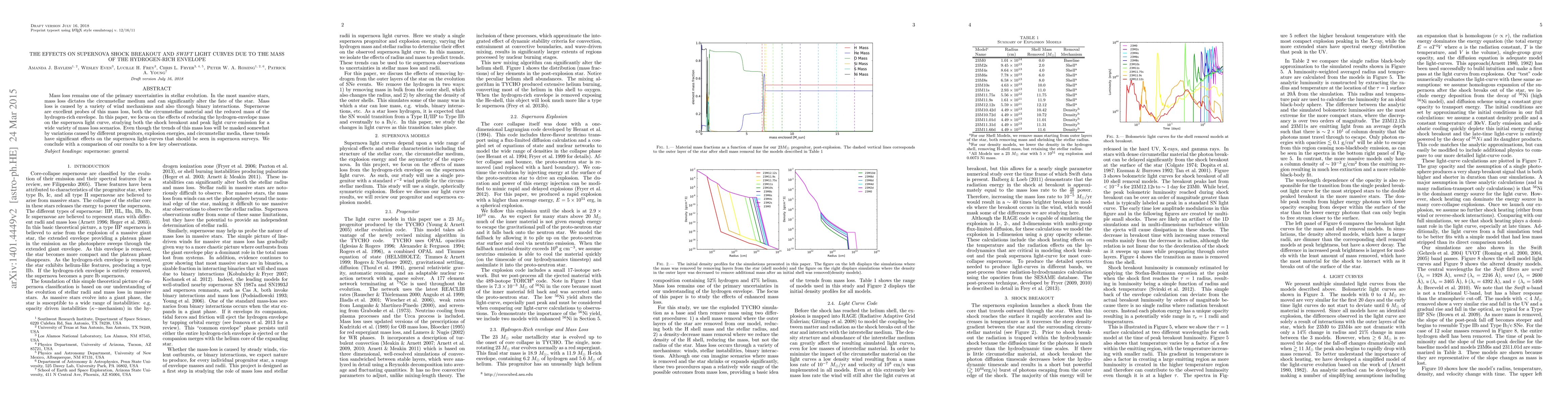 This paper examines how varying the mass of the hydrogen-rich envelope affects supernova shock breakout and light curves. It finds that reduced envelope mass significantly alters supernova light curves, impacting both shock breakout and peak luminosity, with implications for supernova surveys.