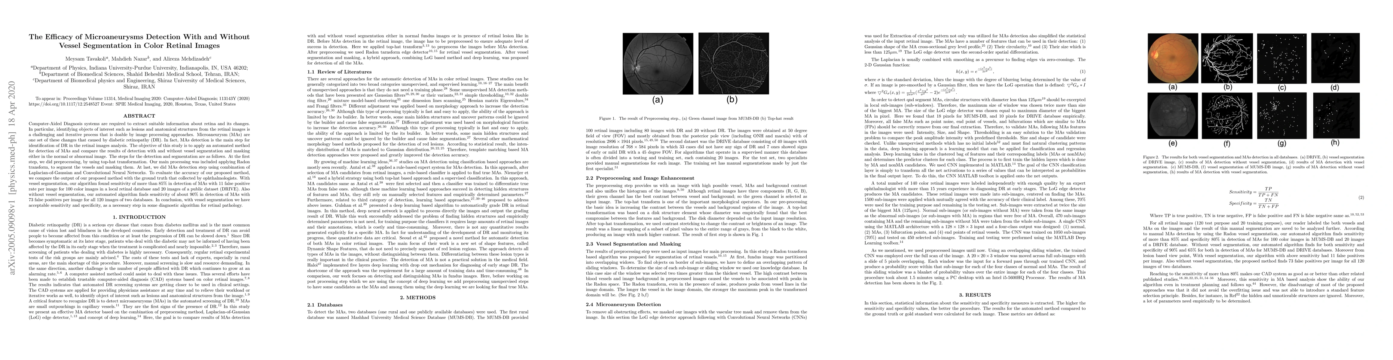 This study evaluates an automated method for detecting microaneurysms in retinal images, comparing results with and without vessel segmentation. With vessel segmentation, sensitivity exceeds 85% with 11 false positives per image, while without segmentation, sensitivity is around 90% with 73 false positives per image.