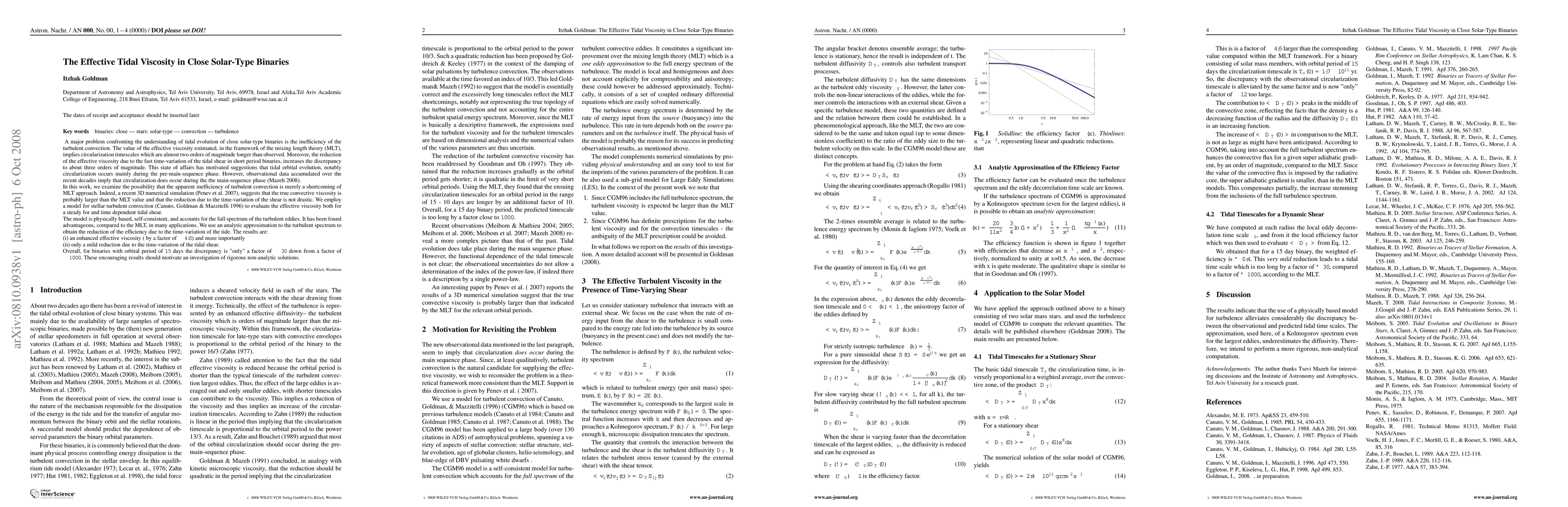The value of the effective convective viscosity, in the framework of the mixing length theory (MLT), is 2 orders of magnitude too small compared to that required by the observational data. Moreover, the reduction of the effective viscosity due to the fast time-variation of the tidal shear in short period binaries, increases the discrepancy to about three orders of magnitude. In this work, we examine the possibility that the apparent inefficiency of turbulent convection is merely a shortcoming of MLT approach. We employ a model for stellar turbulent convection (Canuto, Goldman & Mazzitelli 1996) and use an analytic approximation to the turbulent spectrum. The resulting efficiency is substantially increased; the discrepancy is a factor of 30 down from a factor of 1000. This encouraging result motivates an investigation of the full non-analytic solutions of the turbulent spectrum.