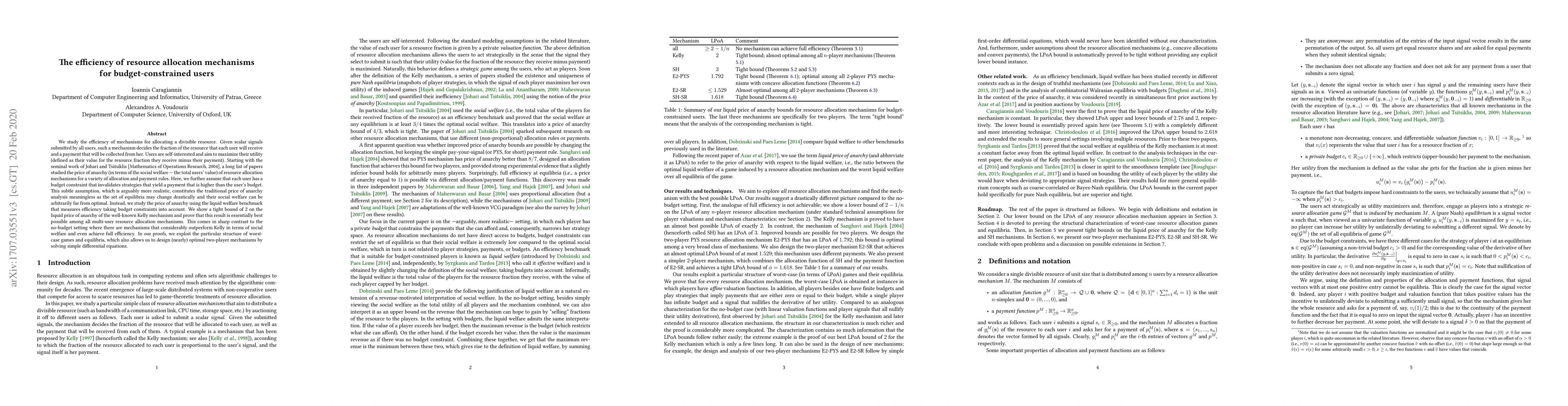 This paper investigates the efficiency of resource allocation mechanisms under budget constraints, showing a tight bound of 2 on the liquid price of anarchy for the Kelly mechanism. It contrasts this with no-budget settings where other mechanisms can achieve better social welfare, highlighting the impact of budget constraints on efficiency.