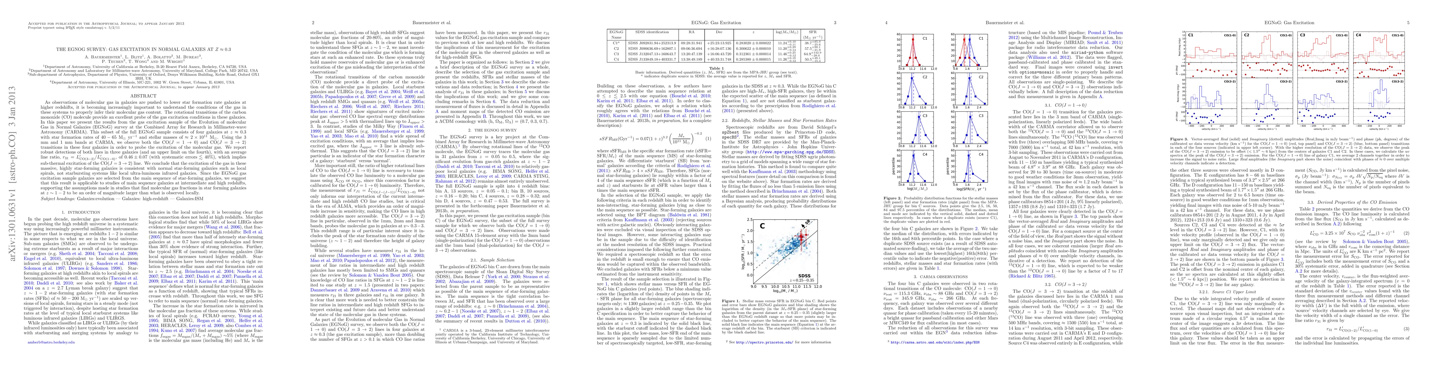 The EGNoG Survey investigates gas excitation in normal galaxies at z~0.3 using CO rotational transitions, finding sub-thermal excitation conditions consistent with local spirals rather than starbursting systems. This suggests that main sequence galaxies at intermediate redshifts likely have similar gas excitation properties.