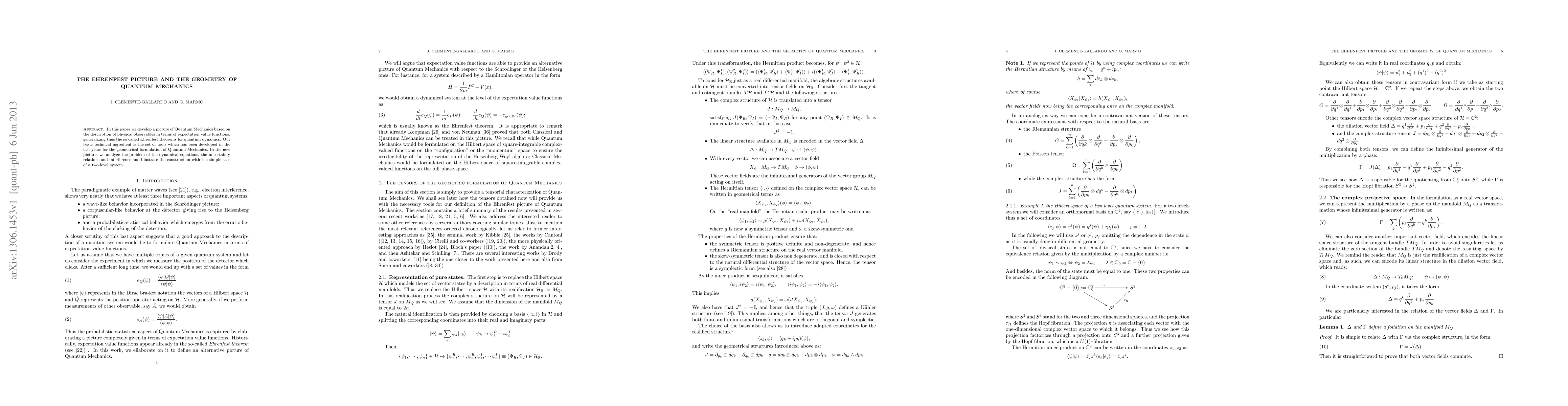 In this paper we develop a picture of Quantum Mechanics based on the description of physical observables in terms of expectation value functions, generalizing thus the so called Ehrenfest theorems for quantum dynamics. Our basic technical ingredient is the set of tools which has been developed in the last years for the geometrical formulation of Quantum Mechanics. In the new picture, we analyze the problem of the dynamical equations, the uncertainty relations and interference and illustrate the construction with the simple case of a two-level system.