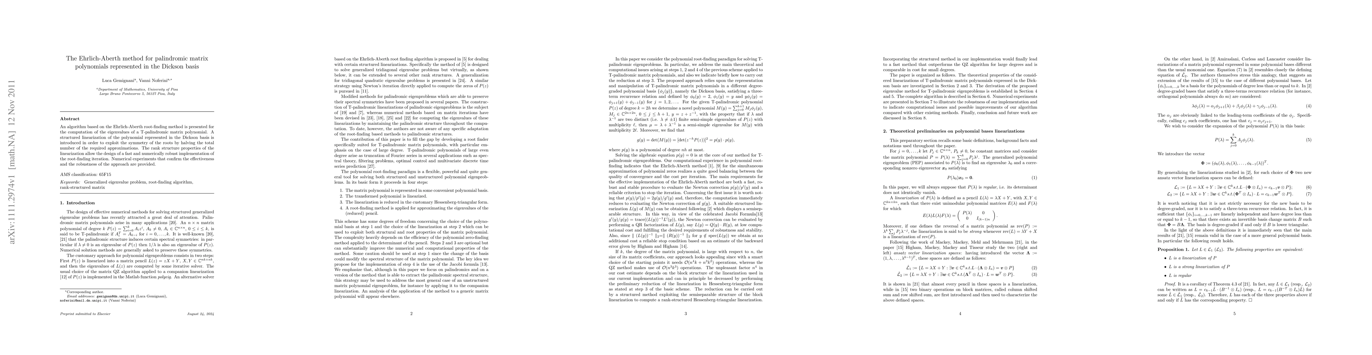 An algorithm based on the Ehrlich-Aberth root-finding method is presented for the computation of the eigenvalues of a T-palindromic matrix polynomial. A structured linearization of the polynomial represented in the Dickson basis is introduced in order to exploit the symmetry of the roots by halving the total number of the required approximations. The rank structure properties of the linearization allow the design of a fast and numerically robust implementation of the root-finding iteration. Numerical experiments that confirm the effectiveness and the robustness of the approach are provided.