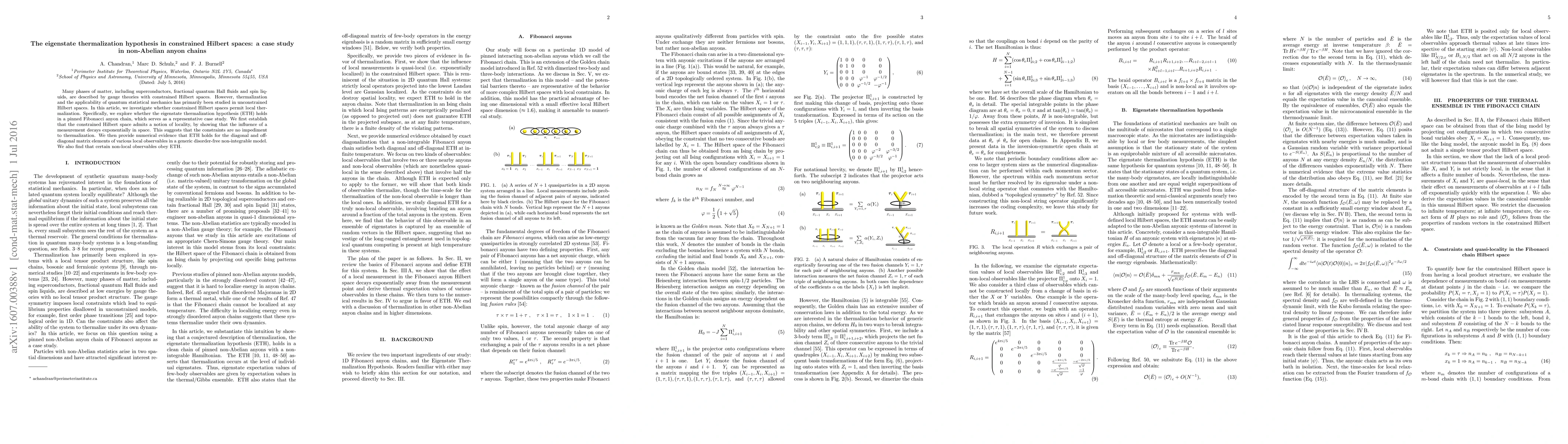 This paper investigates whether the eigenstate thermalization hypothesis (ETH) holds in constrained Hilbert spaces, using a pinned Fibonacci anyon chain as a case study. The authors demonstrate that the constraints do not impede thermalization and provide numerical evidence supporting ETH for both local and certain non-local observables.