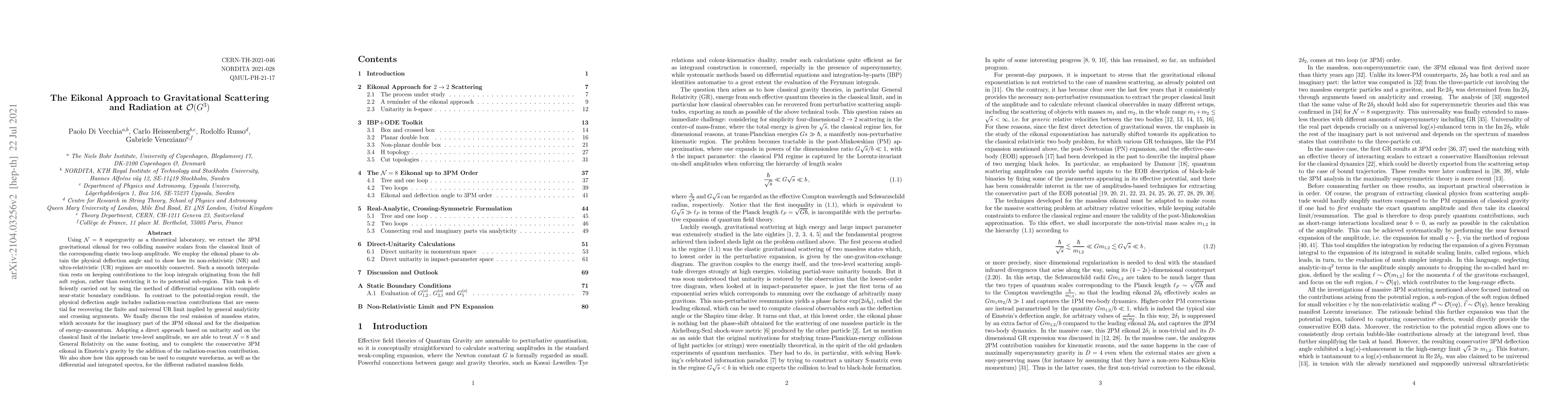 Using $\mathcal N=8$ supergravity as a theoretical laboratory, we extract the 3PM gravitational eikonal for two colliding massive scalars from the classical limit of the corresponding elastic two-loop amplitude. We employ the eikonal phase to obtain the physical deflection angle and to show how its non-relativistic (NR) and ultra-relativistic (UR) regimes are smoothly connected. Such a smooth interpolation rests on keeping contributions to the loop integrals originating from the full soft region, rather than restricting it to its potential sub-region. This task is efficiently carried out by using the method of differential equations with complete near-static boundary conditions. In contrast to the potential-region result, the physical deflection angle includes radiation-reaction contributions that are essential for recovering the finite and universal UR limit implied by general analyticity and crossing arguments. We finally discuss the real emission of massless states, which accounts for the imaginary part of the 3PM eikonal and for the dissipation of energy-momentum. Adopting a direct approach based on unitarity and on the classical limit of the inelastic tree-level amplitude, we are able to treat $\mathcal N=8$ and General Relativity on the same footing, and to complete the conservative 3PM eikonal in Einstein's gravity by the addition of the radiation-reaction contribution. We also show how this approach can be used to compute waveforms, as well as the differential and integrated spectra, for the different radiated massless fields.
