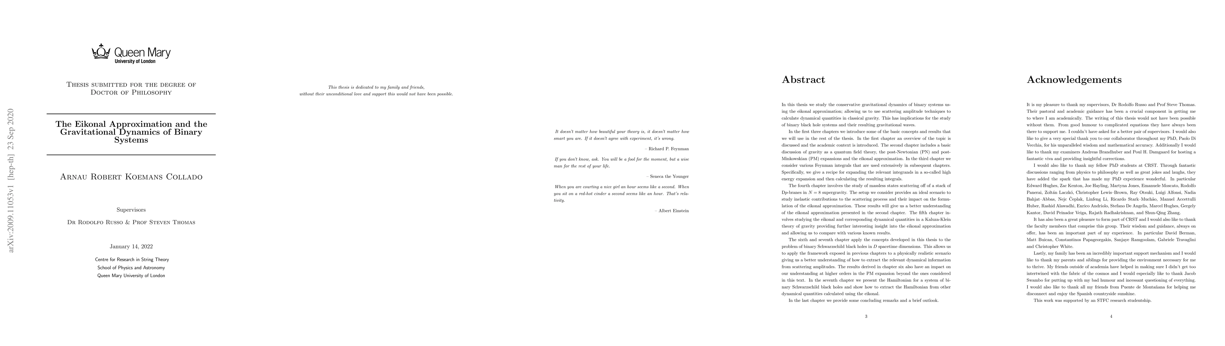 In this thesis we study the conservative gravitational dynamics of binary systems using the eikonal approximation; allowing us to use scattering amplitude techniques to calculate dynamical quantities in classical gravity. This has implications for the study of binary black hole systems and their resulting gravitational waves.