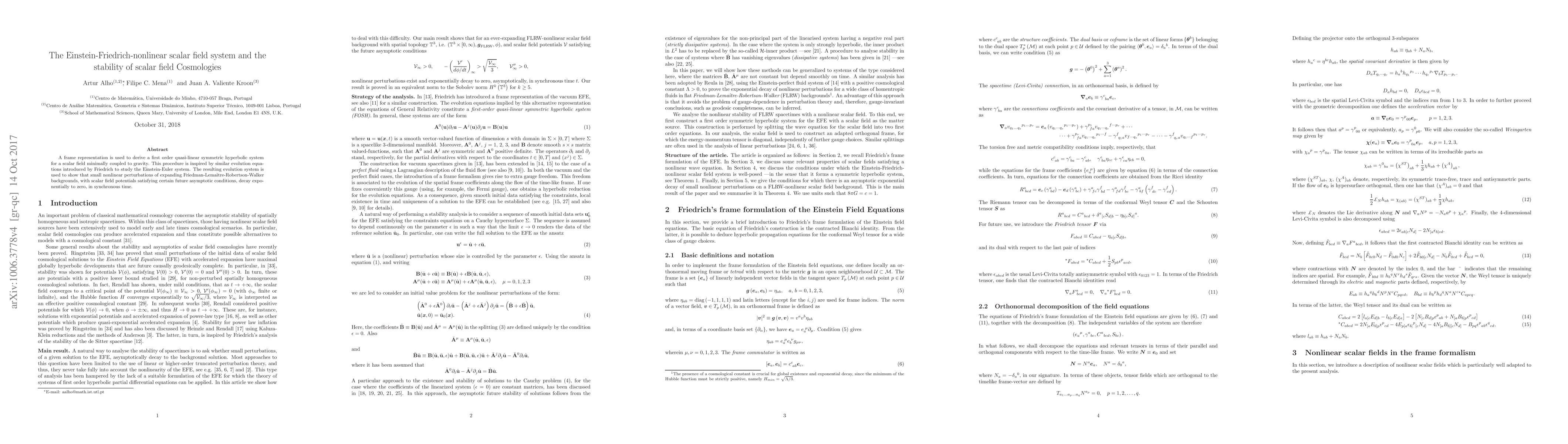A frame representation is used to derive a first order quasi-linear symmetric hyperbolic system for a scalar field minimally coupled to gravity. This procedure is inspired by similar evolution equations introduced by Friedrich to study the Einstein-Euler system. The resulting evolution system is used to show that small nonlinear perturbations of expanding Friedman-Lema\^itre-Robertson-Walker backgrounds, with scalar field potentials satisfying certain future asymptotic conditions, decay exponentially to zero, in synchronous time.