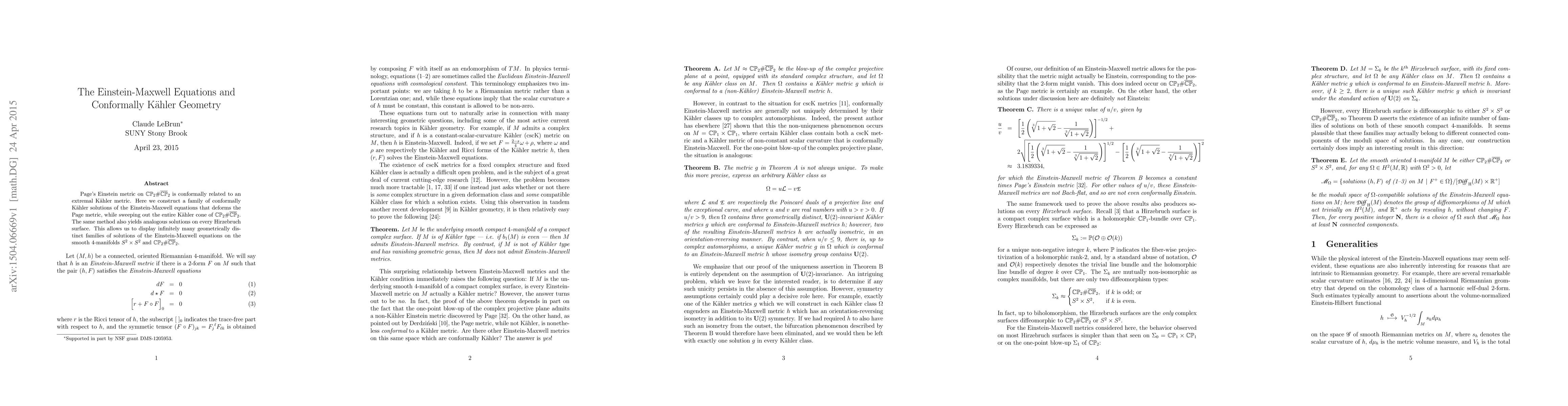 Page's Einstein metric on CP_2 # (-CP_2) is conformally related to an extremal Kaehler metric. Here we construct a family of conformally K\"ahler solutions of the Einstein-Maxwell equations that deforms the Page metric, while sweeping out the entire Kaehler cone of CP_2 # (-CP_2).The same method also yields analogous solutions on every Hirzebruch surface. This allows us to display infinitely many geometrically distinct families of solutions of the Einstein-Maxwell equations on the smooth 4-manifolds S^2 x S^2 and CP_2 # (-CP_2).