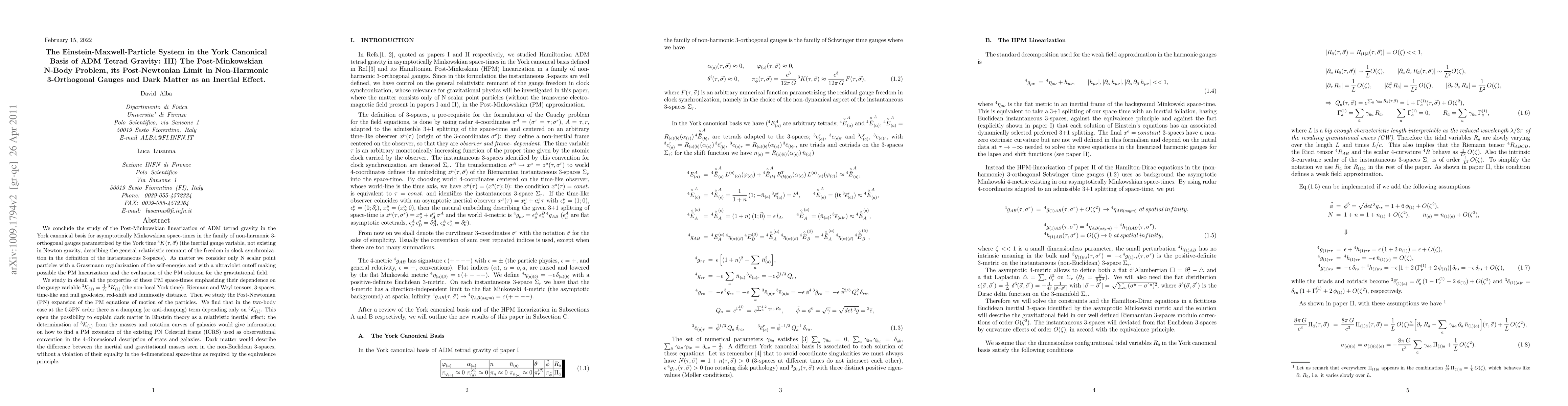 This paper concludes the study of the Post-Minkowskian linearization of ADM tetrad gravity in non-harmonic 3-orthogonal gauges, focusing on N scalar point particles. It finds a damping term at the 0.5PN order that suggests dark matter could be an inertial relativistic effect, potentially explaining it without violating the equivalence principle.