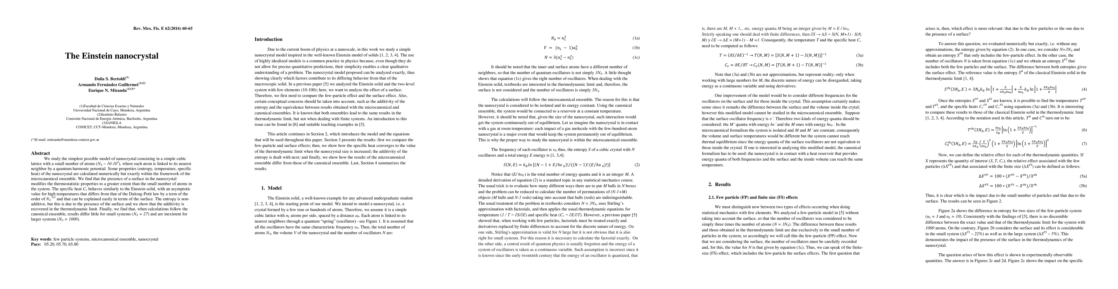 We study the simplest possible model of nanocrystal consisting in a simple cubic lattice with a small number of atoms (NA ~ 10-10^3), where each atom is linked to its nearest neighbor by a quantum harmonic potential. Some properties (entropy, temperature, specific heat) of the nanocrystal are calculated numerically but exactly within the framework of the microcanonical ensemble. We find that the presence of a surface in the nanocrystal modifies the thermostatistic properties to a greater extent than the small number of atoms in the system. The specific heat Cv behaves similarly to the Einstein solid, with an asymptotic value for high temperatures that differs from that of the Dulong-Petit law by a term of the order of NA^(-1/3) and that can be explained easily in terms of the surface. The entropy is non-additive, but this is due to the presence of the surface and we show that the additivity is recovered in the thermodynamic limit. Finally, we find that, when calculations follow the canonical ensemble, results differ little for small systems (NA = 27) and are inexistent for larger systems (NA = 1000).