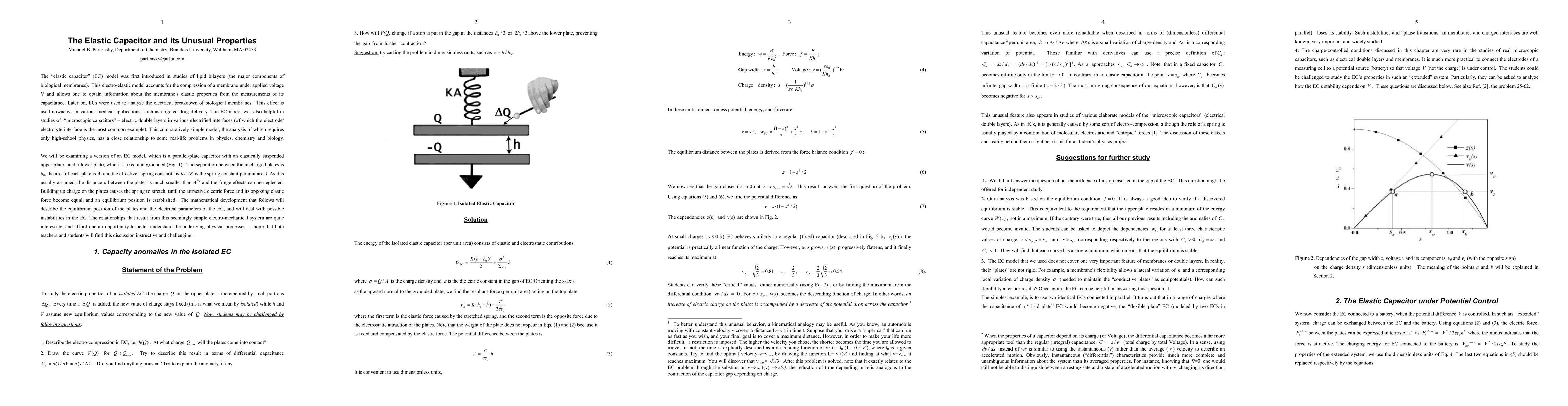 The 'elastic capacitor' (EC) model was first introduced in studies of lipid bilayers (the major components of biological membranes). This electro-elastic model accounted for the compression of a membrane under applied voltage and allowed obtaining information about the membrane's elastic properties from the measurements of its capacitance. Later on, ECs were used to analyze the electrical breakdown of biological membranes. The EC model was also helpful in studies of electric double layers in various electrified interfaces (of which the electrode/ electrolyte interface is the most common example). This comparatively simple model, which analysis requires only high-school physics, has a close relationship to some real-life problems in physics, chemistry and biology. I hope that both teachers and students will find its discussion interesting, challenging and instructive.