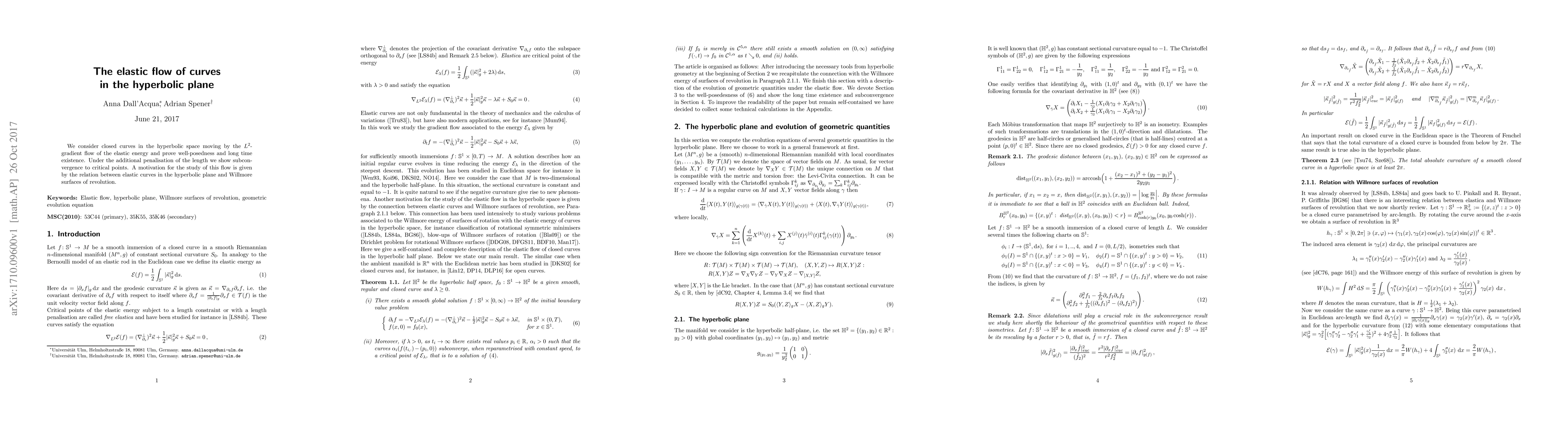 Researchers study the movement of closed curves in hyperbolic space under elastic energy flow, proving well-posedness and long-term existence. They also show that adding a length penalty leads to convergence to critical points.