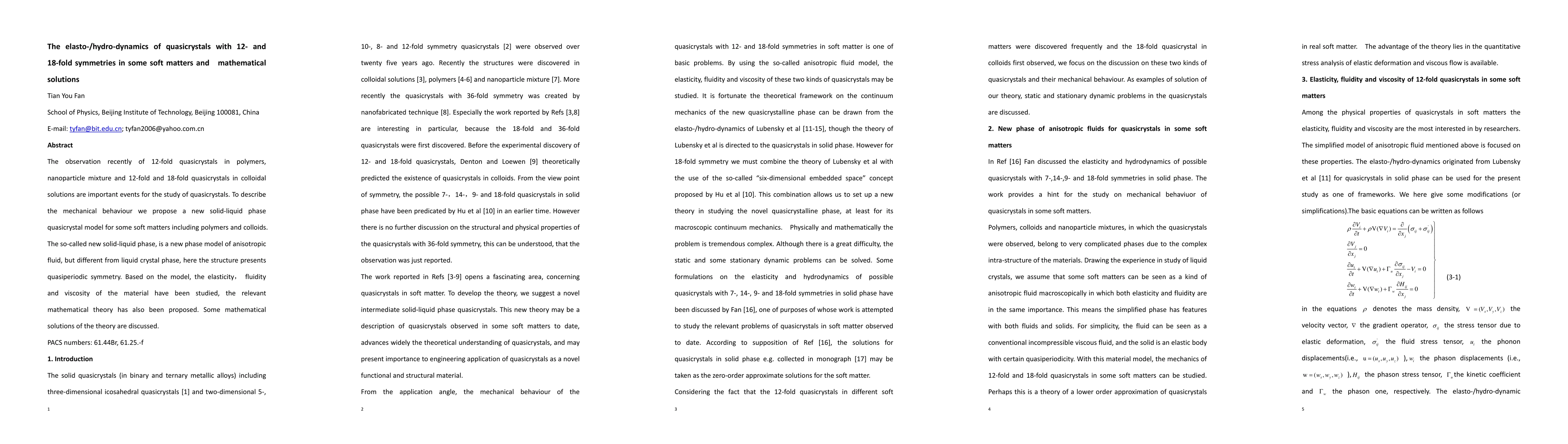 Researchers propose a new model to study quasicrystals in soft matters, including polymers and colloids, revealing unique properties like elasticity and fluidity. The study sheds light on the behavior of 12-fold and 18-fold quasicrystals, which have potential applications in various fields.