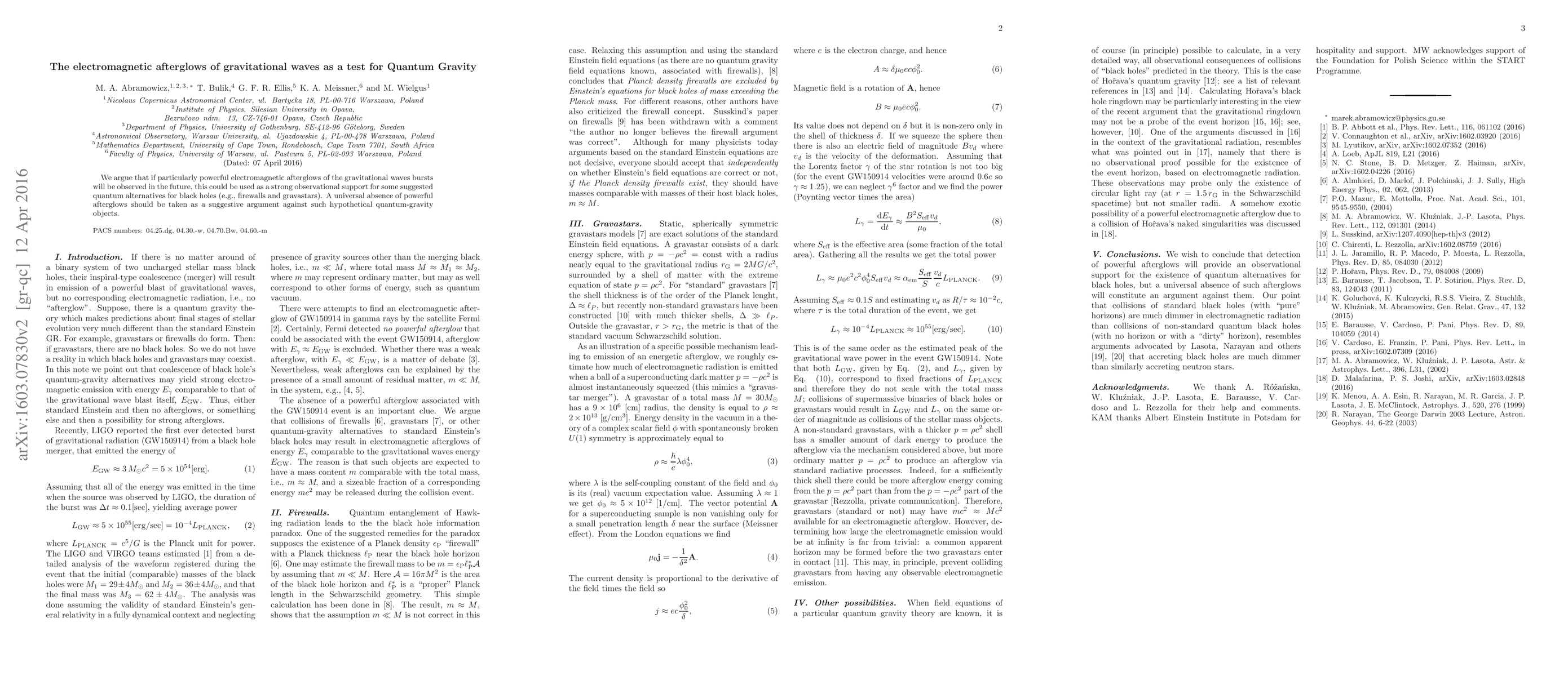 We argue that if particularly powerful electromagnetic afterglows of the gravitational waves bursts will be observed in the future, this could be used as a strong observational support for some suggested quantum alternatives for black holes (e.g., firewalls and gravastars). A universal absence of powerful afterglows should be taken as a suggestive argument against such hypothetical quantum-gravity objects.