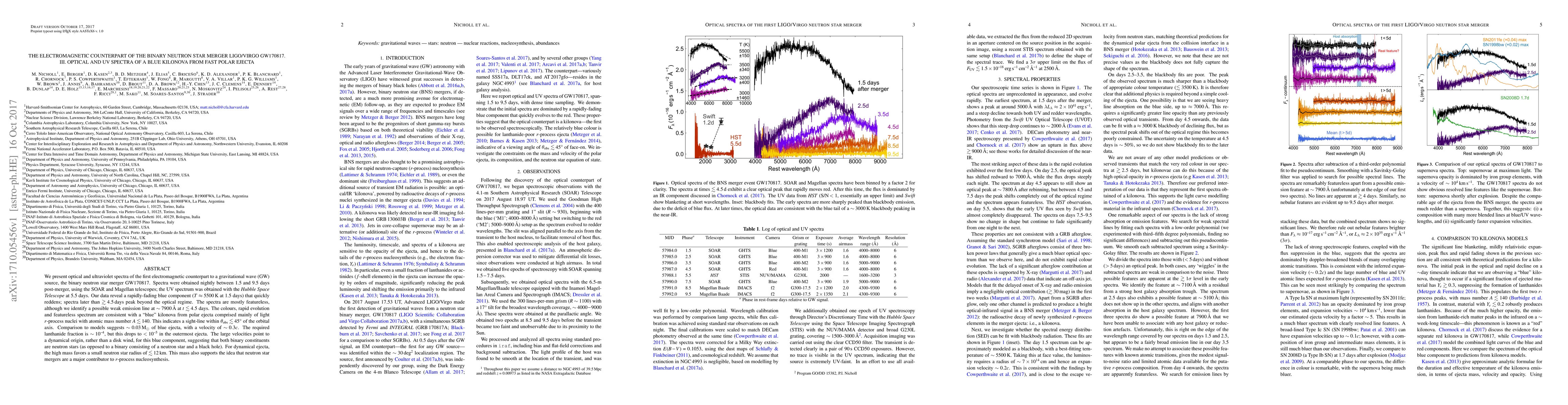 This paper presents optical and UV spectra of the electromagnetic counterpart from the neutron star merger GW170817, revealing a rapidly fading blue kilonova from fast polar ejecta. The spectra indicate a dynamical origin for the blue component, suggesting both neutron stars merged, and supporting the role of such mergers in $r$-process nucleosynthesis.