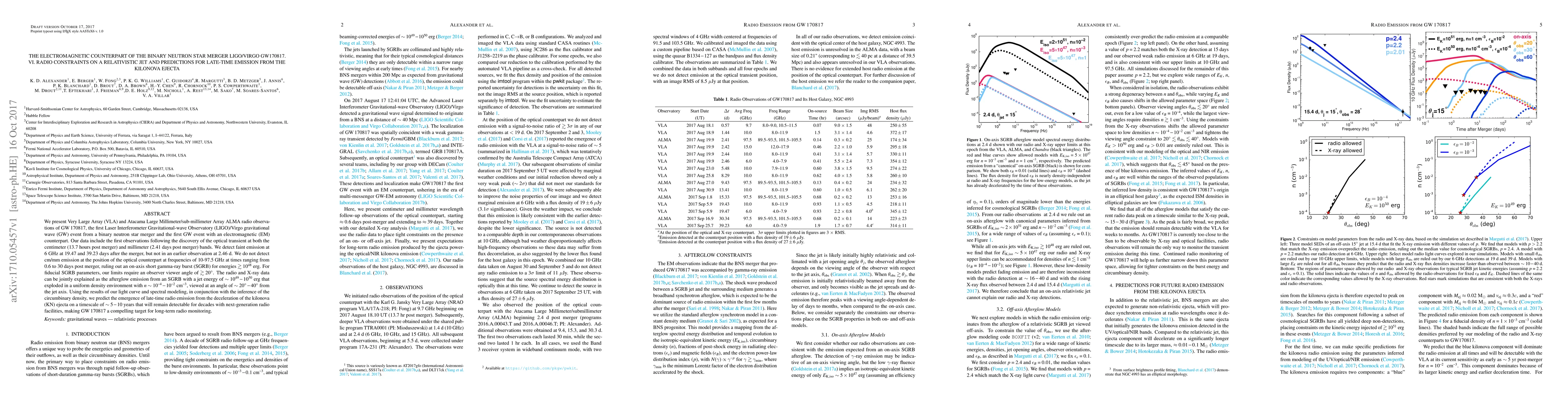 The study observes radio emissions from GW170817, a binary neutron star merger, and predicts late-time radio emission from kilonova ejecta on a timescale of 5-10 years.