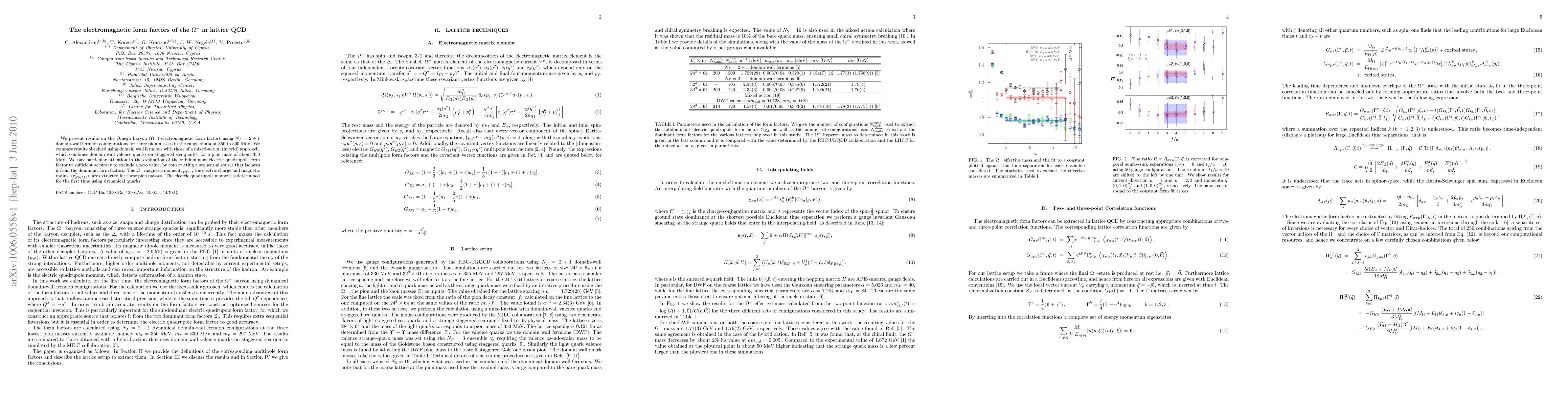 This study calculates the electromagnetic form factors of the Omega baryon using lattice QCD with $N_f=2+1$ domain-wall fermions, focusing on pion masses from 350 to 300 MeV. It compares domain wall fermion results with a mixed-action approach and determines the Omega baryon's magnetic moment, electric charge, and magnetic radius, while also measuring the electric quadrupole moment for the first time using dynamical quarks.