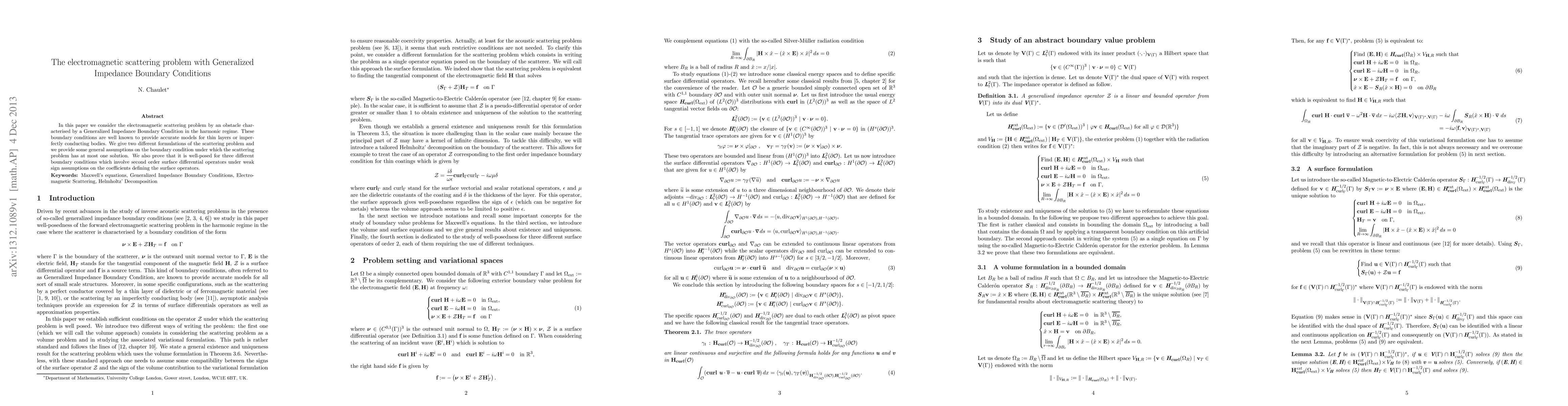 This paper investigates the electromagnetic scattering problem with Generalized Impedance Boundary Conditions (GIBCs) in the harmonic regime, presenting two formulations and proving the uniqueness and well-posedness of the scattering problem under specific conditions involving second-order surface differential operators.