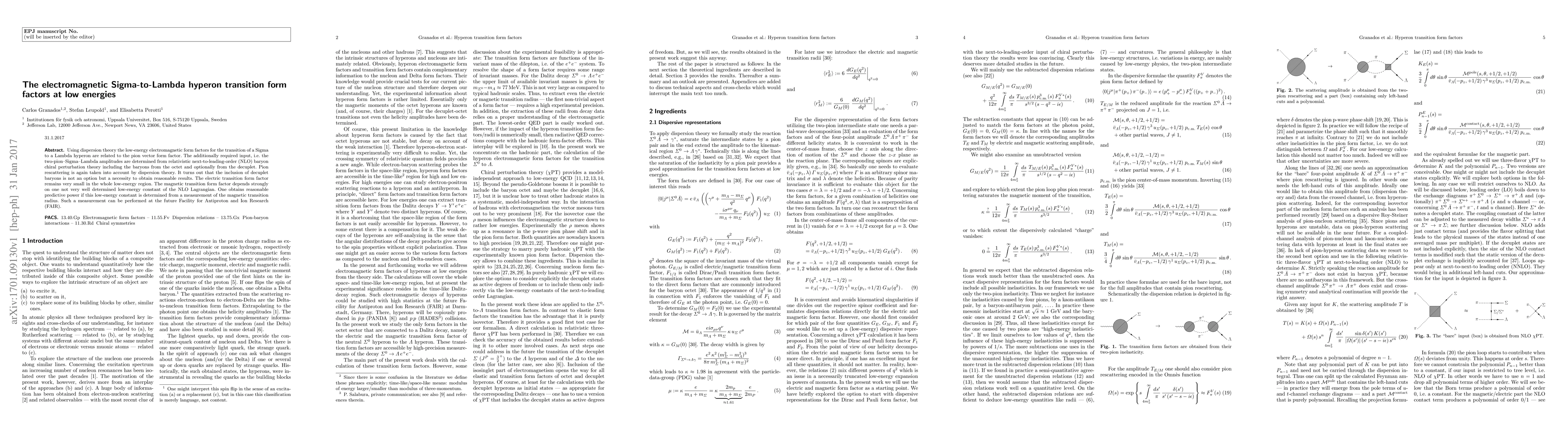 Researchers used dispersion theory to study low-energy electromagnetic transitions between Sigma and Lambda hyperons, finding that magnetic form factors depend on a poorly known constant; future measurements at FAIR could help determine this constant.