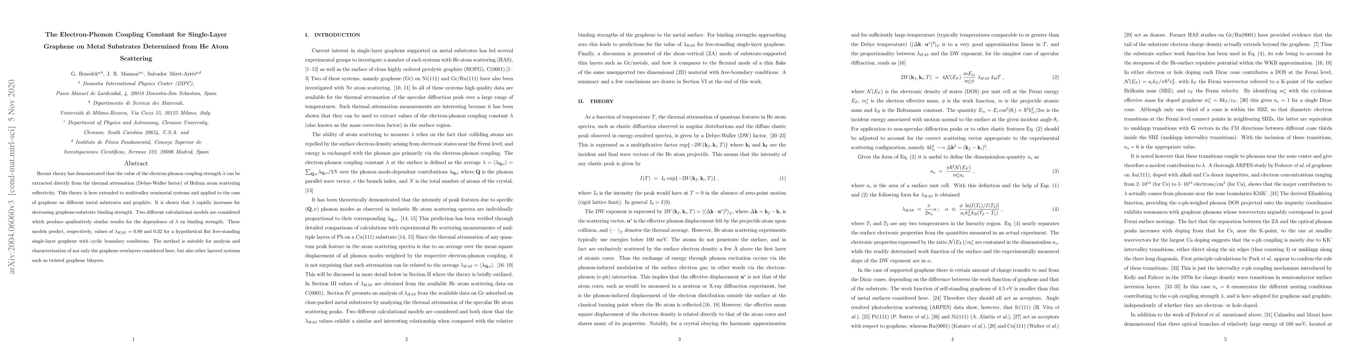 Recent theory has demonstrated that the value of the electron-phonon coupling strength $\lambda$ can be extracted directly from the thermal attenuation (Debye-Waller factor) of Helium atom scattering reflectivity. This theory is here extended to multivalley semimetal systems and applied to the case of graphene on different metal substrates and graphite. It is shown that $\lambda$ rapidly increases for decreasing graphene-substrate binding strength. Two different calculational models are considered which produce qualitatively similar results for the dependence of $\lambda$ on binding strength. These models predict, respectively, values of $\lambda_{HAS} = 0.89$ and 0.32 for a hypothetical flat free-standing single-layer graphene with cyclic boundary conditions. The method is suitable for analysis and characterization of not only the graphene overlayers considered here, but also other layered systems such as twisted graphene bilayers.