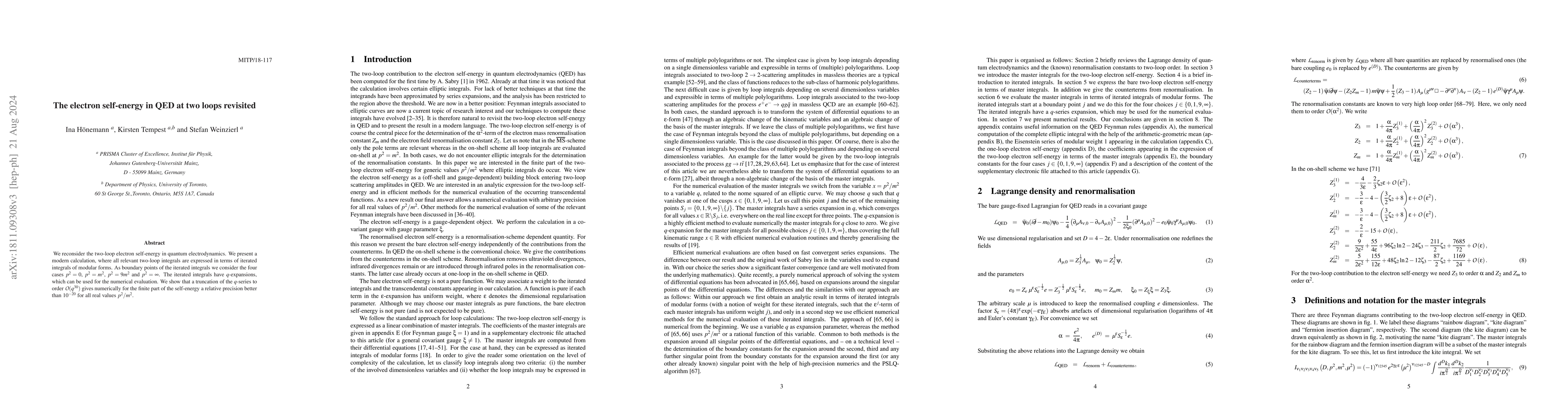 We reconsider the two-loop electron self-energy in quantum electrodynamics. We present a modern calculation, where all relevant two-loop integrals are expressed in terms of iterated integrals of modular forms. As boundary points of the iterated integrals we consider the four cases $p^2=0$, $p^2=m^2$, $p^2=9m^2$ and $p^2=\infty$. The iterated integrals have $q$-expansions, which can be used for the numerical evaluation. We show that a truncation of the $q$-series to order ${\mathcal O}(q^{30})$ gives numerically for the finite part of the self-energy a relative precision better than $10^{-20}$ for all real values $p^2/m^2$.
