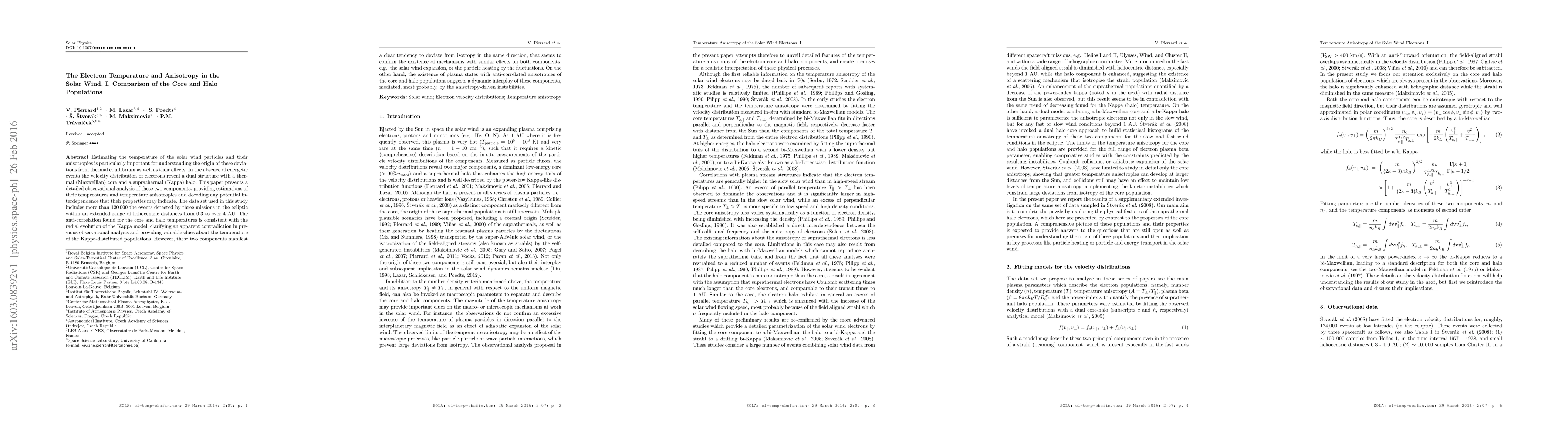 This paper investigates the electron temperature and anisotropy in the solar wind's core and halo populations, revealing a dual structure with distinct thermal and suprathermal components. The study finds an anti-correlation between core and halo temperatures, consistent with the radial evolution of the Kappa model, and suggests mechanisms like solar wind expansion and particle heating by fluctuations influence both components similarly.