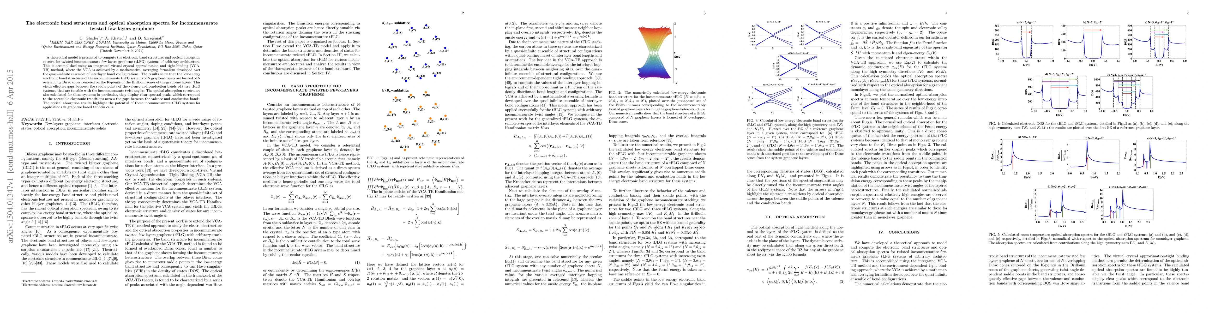 This paper presents a theoretical model using VCA-TB to analyze the electronic band structures and optical absorption spectra of twisted incommensurate few-layers graphene, revealing tunable effective gaps and distinct spectral peaks, suggesting potential for tandem cell applications.