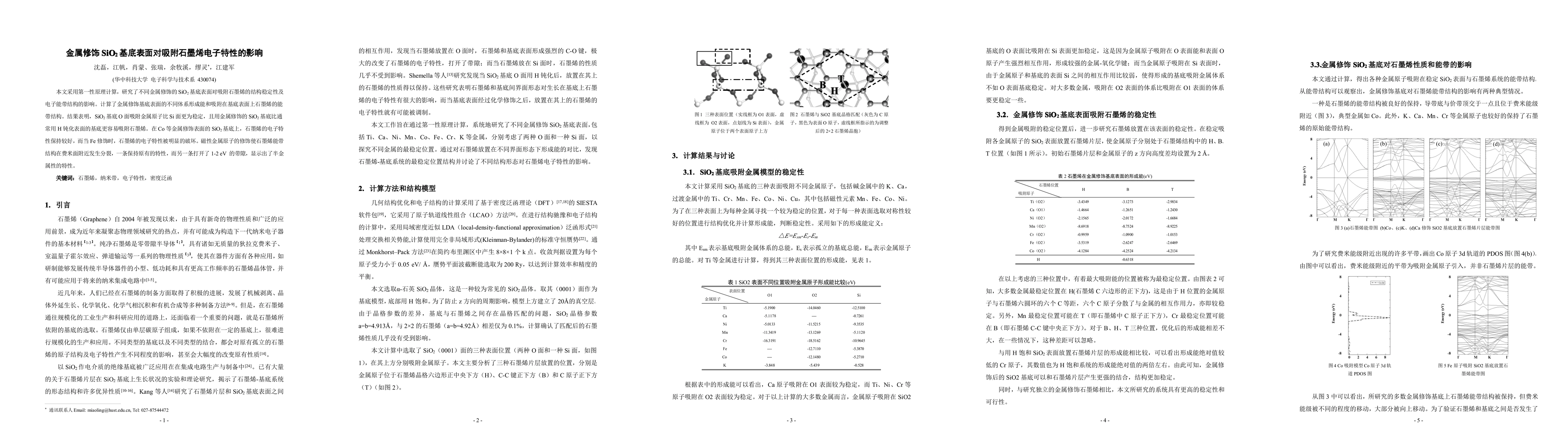 This research uses first principles calculations to examine the electronic properties of graphene on various metal-modified SiO2 substrates. The study finds that metal atoms adsorb more stably on the O surface of SiO2, and graphene exhibits strong stability on these modified substrates. While graphene's band structure on Co-modified SiO2 resembles free-standing graphene, Fe decoration induces significant changes, potentially creating a semi-metal state with a small gap in the spin-up state.