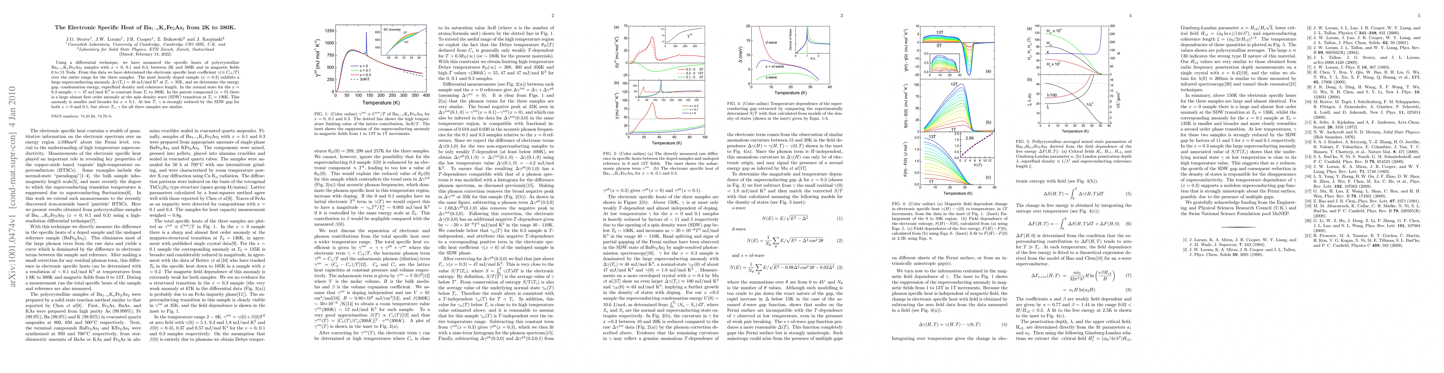 This study measures the electronic specific heat of Ba1-xKxFe2As2 samples from 2K to 380K, revealing significant superconducting and spin density wave anomalies. The heavily doped sample (x=0.3) shows a large superconducting anomaly at Tc=35K, while the undoped sample (x=0) exhibits a large anomaly at the spin density wave transition at To=136K.