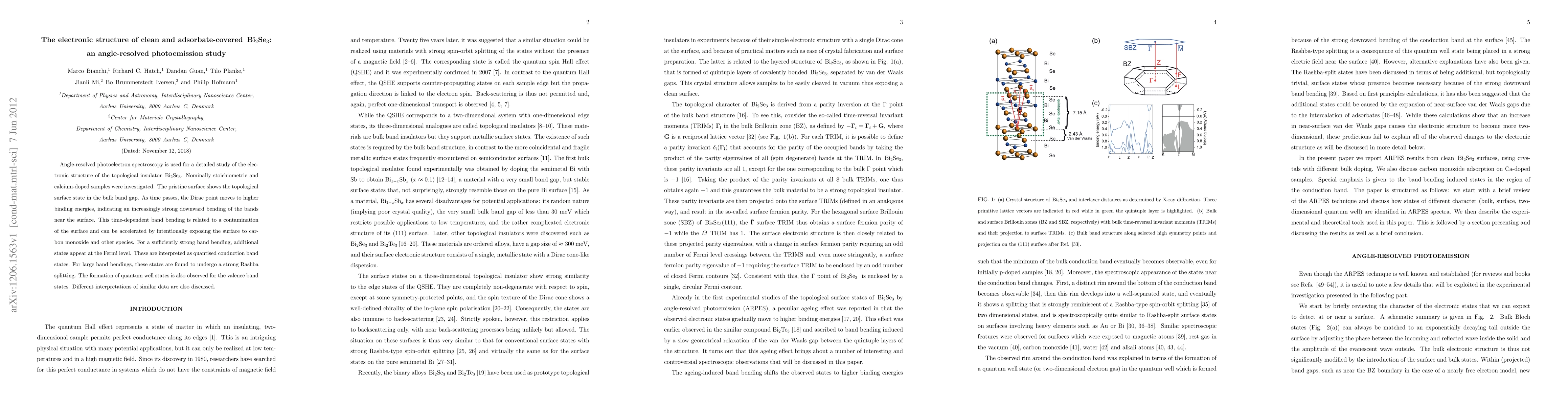 Researchers studied the electronic structure of Bi2Se3 using angle-resolved photoelectron spectroscopy, finding that a strong downward bending of bands near the surface can create quantized conduction band states with Rashba splitting.