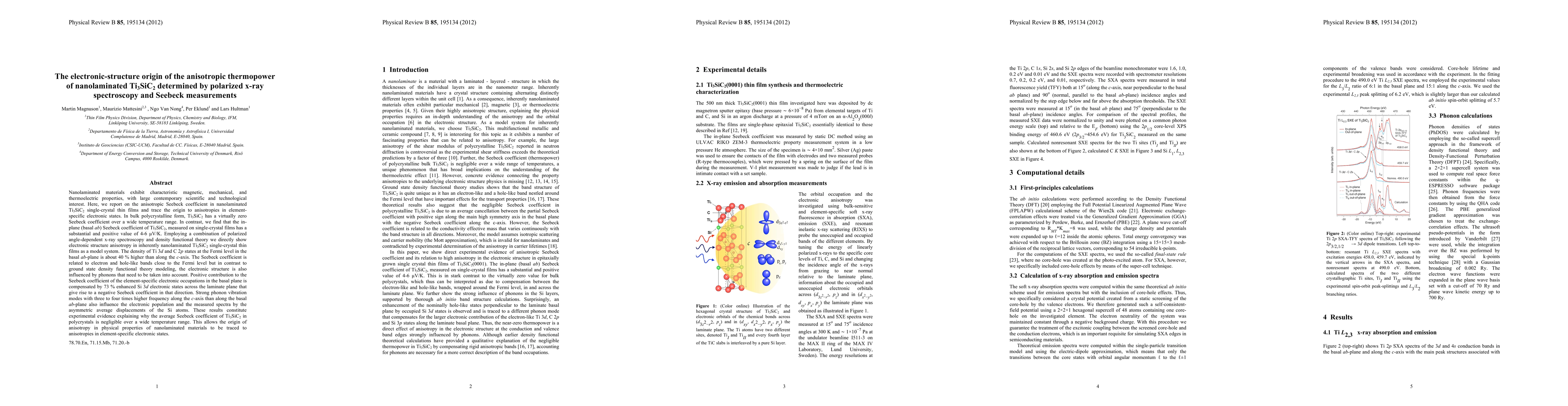 This paper investigates the anisotropic thermopower in nanolaminated Ti3SiC2 thin films, revealing a substantial positive in-plane Seebeck coefficient due to electronic structure anisotropy. The study combines polarized x-ray spectroscopy and DFT to show that the density of Ti 3d and C 2p states is 40% higher in the basal plane than along the c-axis, explaining the observed anisotropy.