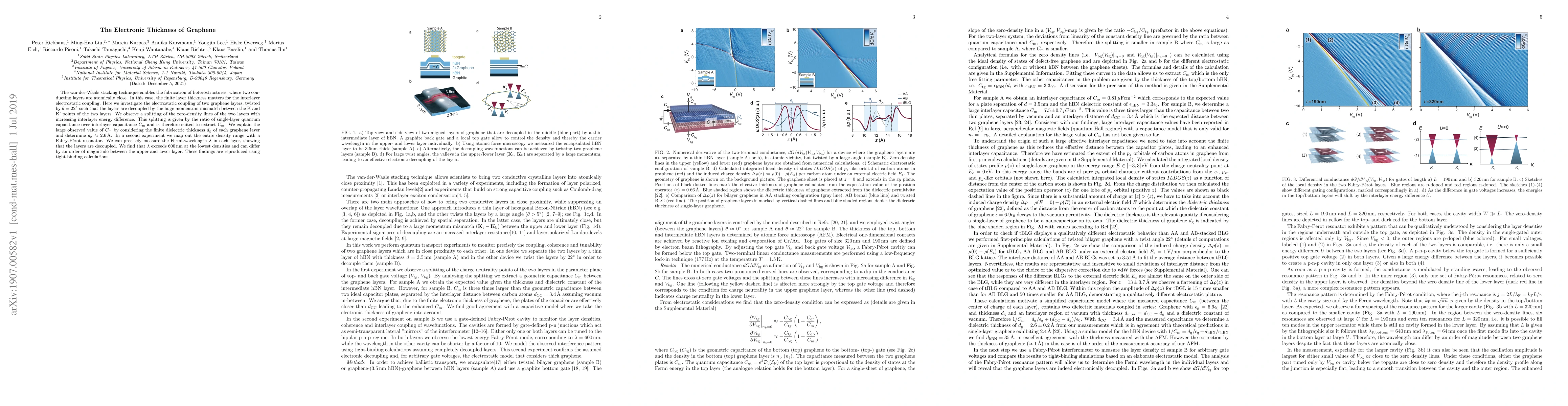 The van-der-Waals stacking technique enables the fabrication of heterostructures, where two conducting layers are atomically close. In this case, the finite layer thickness matters for the interlayer electrostatic coupling. Here we investigate the electrostatic coupling of two graphene layers, twisted by 22 degrees such that the layers are decoupled by the huge momentum mismatch between the K and K' points of the two layers. We observe a splitting of the zero-density lines of the two layers with increasing interlayer energy difference. This splitting is given by the ratio of single-layer quantum capacitance over interlayer capacitance C and is therefore suited to extract C. We explain the large observed value of C by considering the finite dielectric thickness d of each graphene layer and determine d=2.6 Angstrom. In a second experiment we map out the entire density range with a Fabry-P\'erot resonator. We can precisely measure the Fermi-wavelength in each layer, showing that the layers are decoupled. We find that the Fermi wavelength exceeds 600nm at the lowest densities and can differ by an order of magnitude between the upper and lower layer. These findings are reproduced using tight-binding calculations.