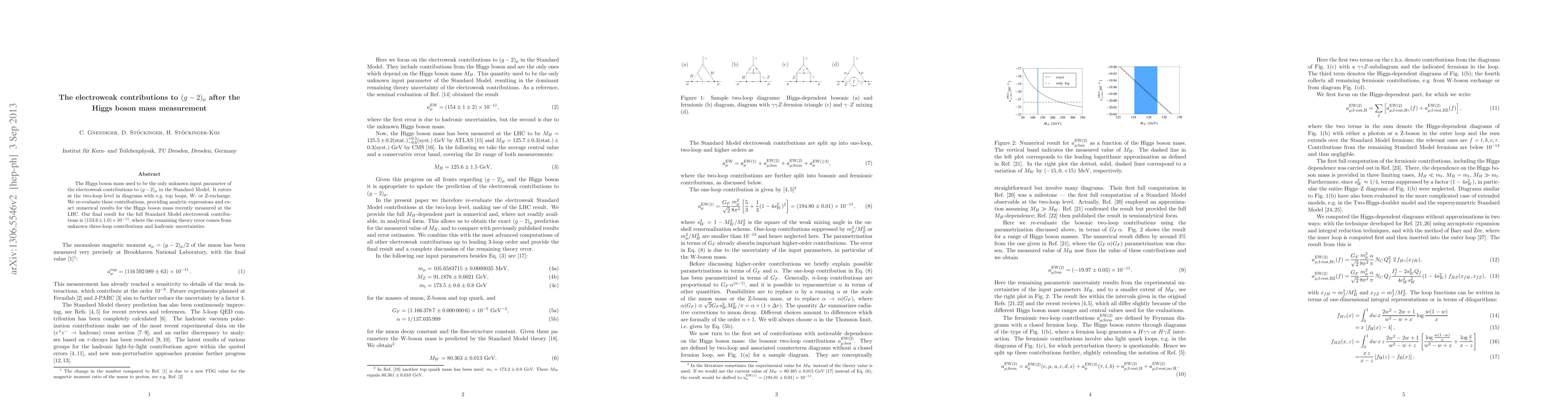 The Higgs boson mass used to be the only unknown input parameter of the electroweak contributions to (g-2)_\mu\ in the Standard Model. It enters at the two-loop level in diagrams with e.g. top loops, W- or Z-exchange. We re-evaluate these contributions, providing analytic expressions and exact numerical results for the Higgs boson mass recently measured at the LHC. Our final result for the full Standard Model electroweak contributions is (153.6\pm1.0)*10^{-11}, where the remaining theory error comes from unknown three-loop contributions and hadronic uncertainties.
