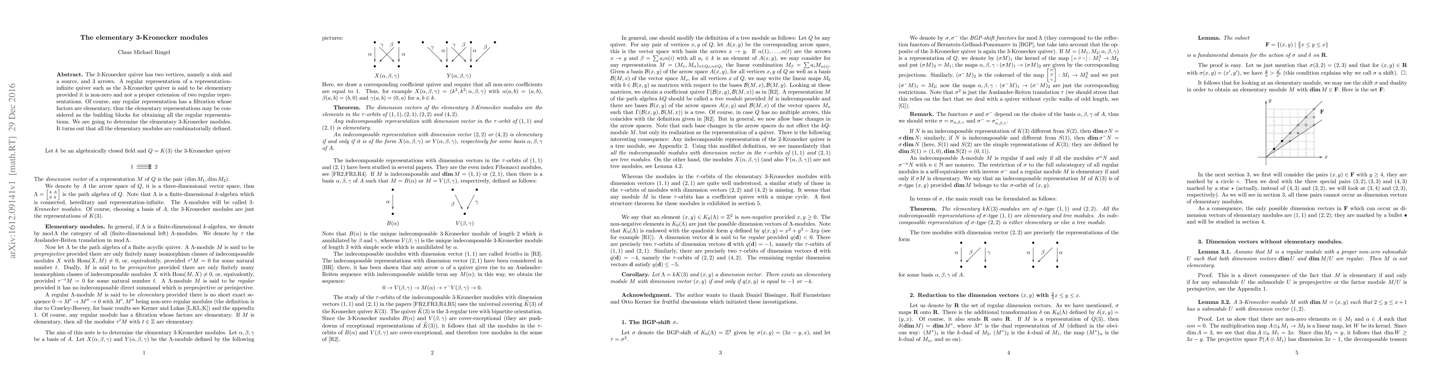 This paper identifies the elementary 3-Kronecker modules, which are the building blocks for all regular representations of the 3-Kronecker quiver. The authors demonstrate that these elementary modules are combinatorially defined.
