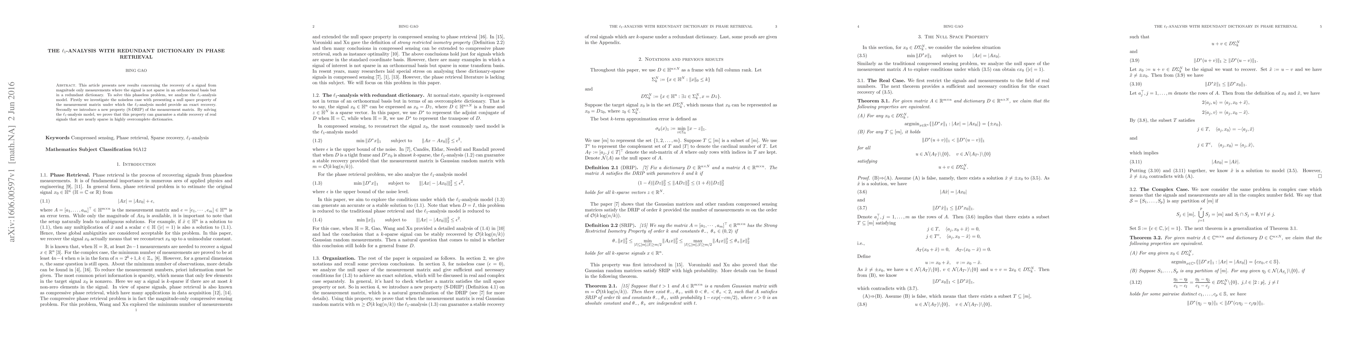 This article presents new results concerning the recovery of a signal from magnitude only measurements where the signal is not sparse in an orthonormal basis but in a redundant dictionary. To solve this phaseless problem, we analyze the $ \ell_1 $-analysis model. Firstly we investigate the noiseless case with presenting a null space property of the measurement matrix under which the $ \ell_1 $-analysis model provide an exact recovery. Secondly we introduce a new property (S-DRIP) of the measurement matrix. By solving the $ \ell_1 $-analysis model, we prove that this property can guarantee a stable recovery of real signals that are nearly sparse in highly overcomplete dictionaries.