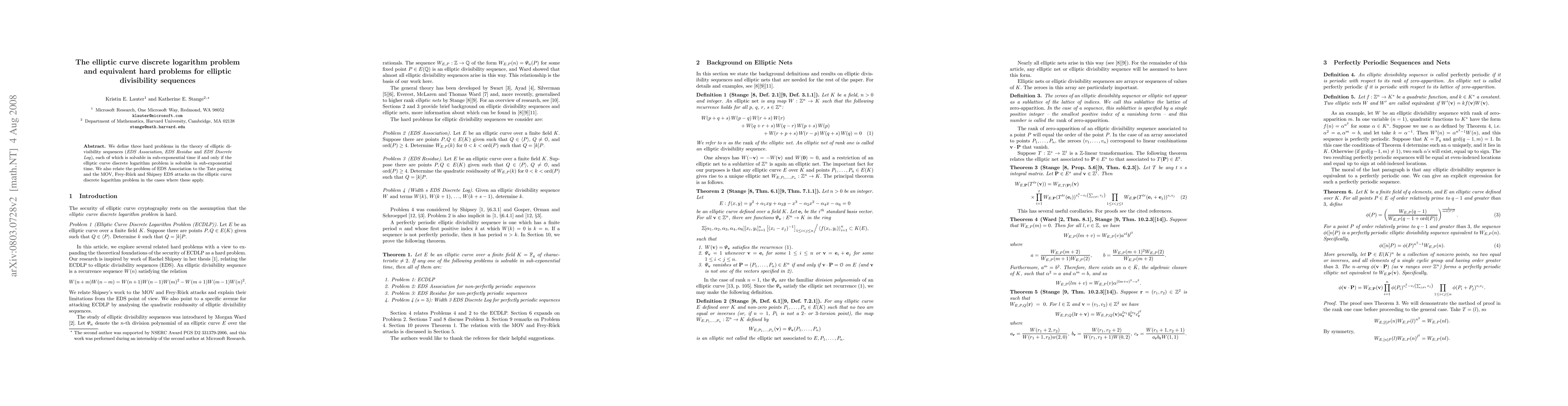 This paper defines three hard problems in elliptic divisibility sequences (EDS) that are equivalent to the elliptic curve discrete logarithm problem. It also connects the EDS Association problem to known attacks on the elliptic curve discrete logarithm problem.