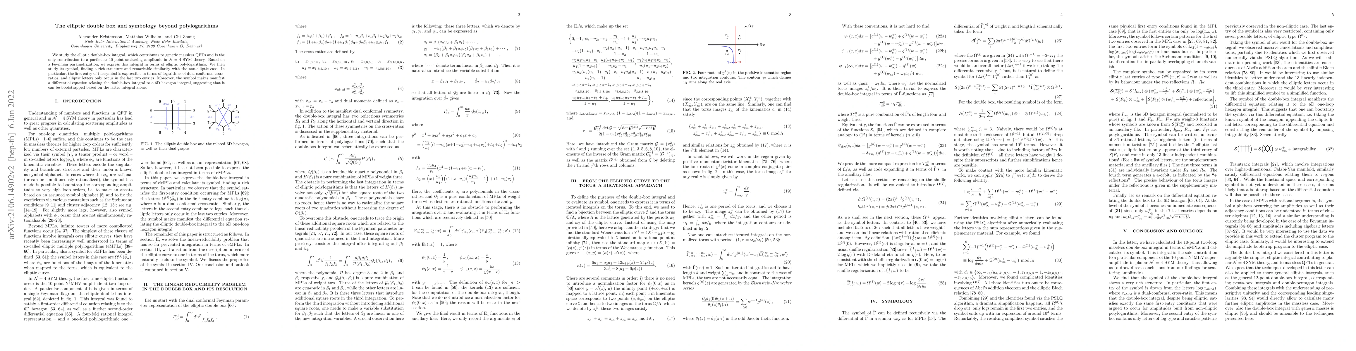 This paper investigates the elliptic double-box integral in quantum field theory, expressing it in terms of elliptic polylogarithms and exploring its symbol structure. The findings reveal a differential equation linking the double-box integral to a 6D hexagon integral, suggesting a bootstrapping approach based on the latter integral.