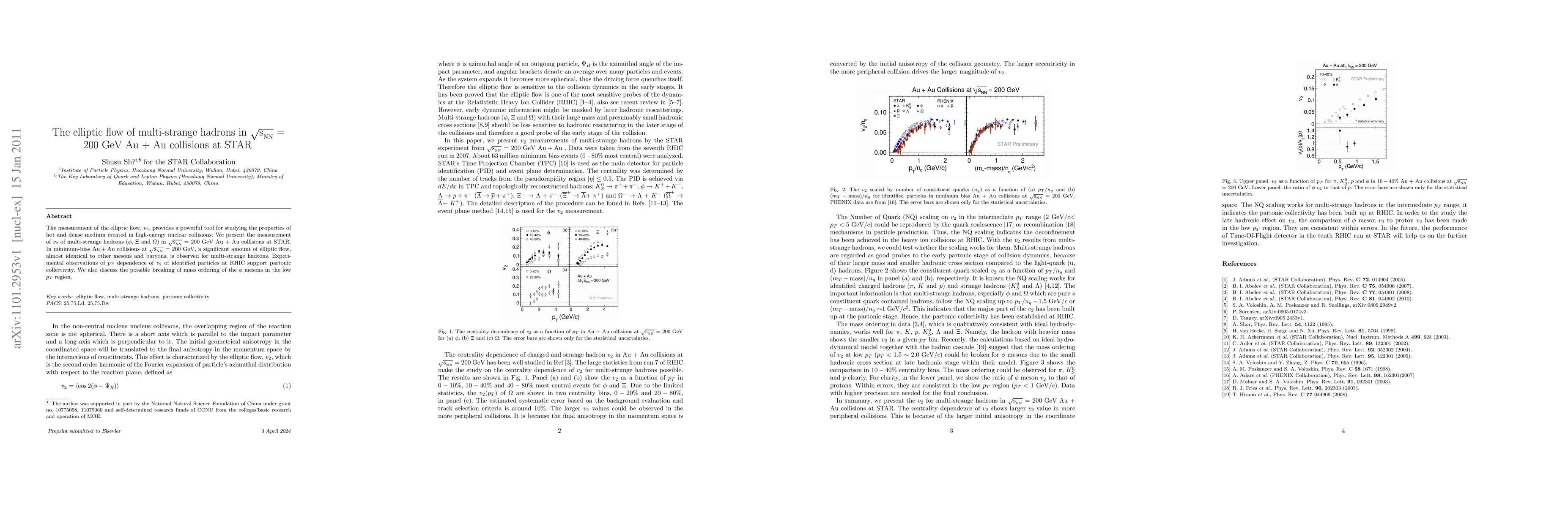 This paper reports on the elliptic flow measurement of multi-strange hadrons ($\phi$, $\Xi$, $\Omega$) in Au + Au collisions at STAR, revealing significant flow similar to other particles, supporting partonic collectivity. It also discusses the potential disruption of mass ordering in $\phi$ mesons at low transverse momentum.