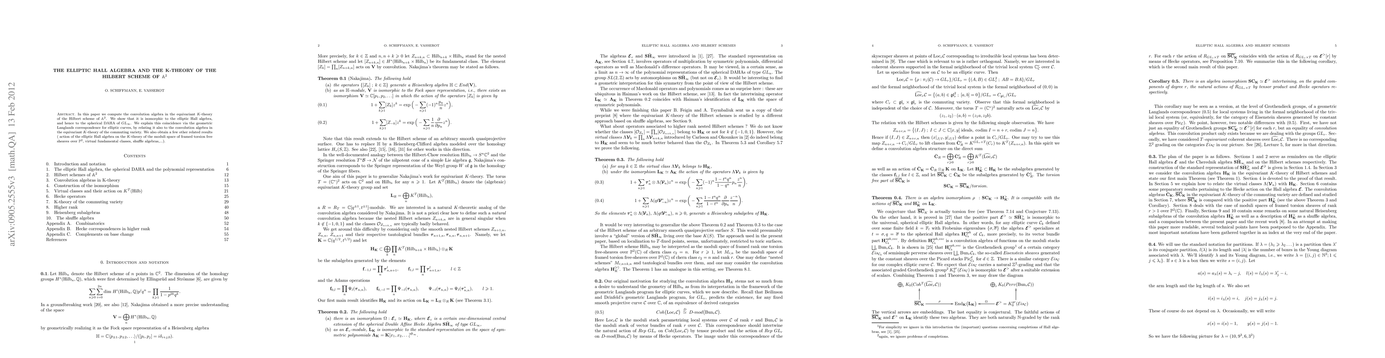 Researchers compute the convolution algebra in the equivariant K-theory of the Hilbert scheme of A^2, finding it isomorphic to the elliptic Hall algebra and related to the spherical DAHA of GL_ty via the geometric Langlands correspondence.