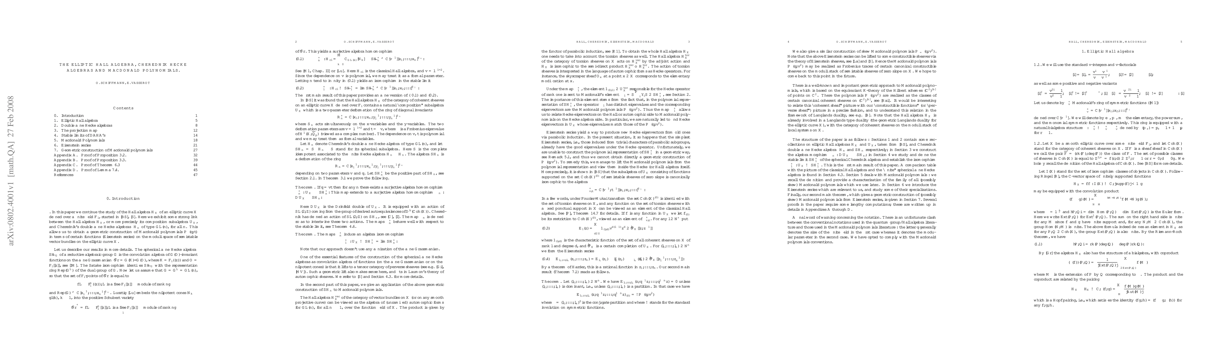 We show that the Hall algebra of the category of coherent sheaves on an elliptic curve (or, equivalently, the algebra of unramified automorphic forms for GL(n) for all n) is equal to the stable limit of spherical double affine Hecke algebras for GL(k) as k goes to infinity. The two parameters correspond to the size of the finite field and the modulus of the elliptc curve. Under this isomorphism the Hecke operators are mapped to the Macdonald operators. This allows us to give a geometric construction of Macdonald polynomials (eigenvectors for the Macdonald operator) in terms of a suitable specialization of Eisenstein series (eigenvectors for the Hecke operators).