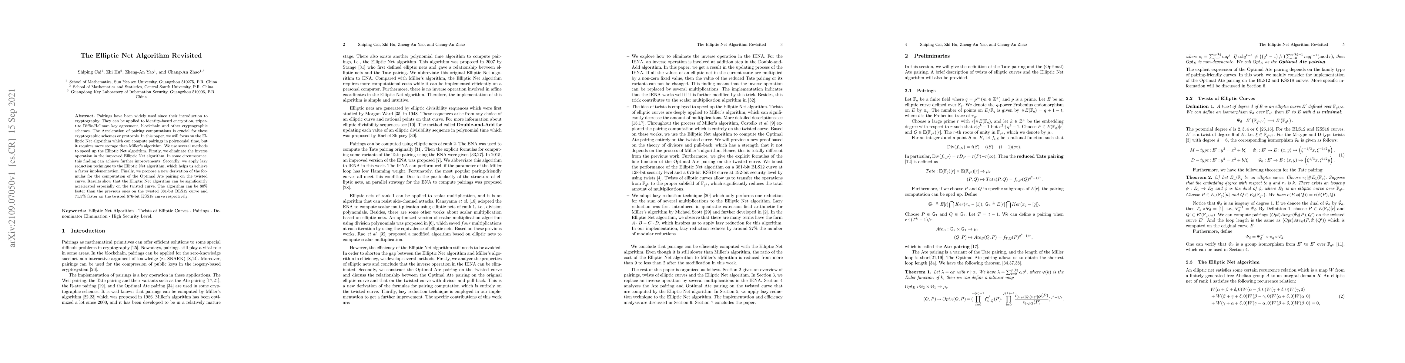 Researchers accelerated the Elliptic Net algorithm for pairing computations, achieving 80% speedup on a 381-bit curve and 71.5% speedup on a 676-bit curve.