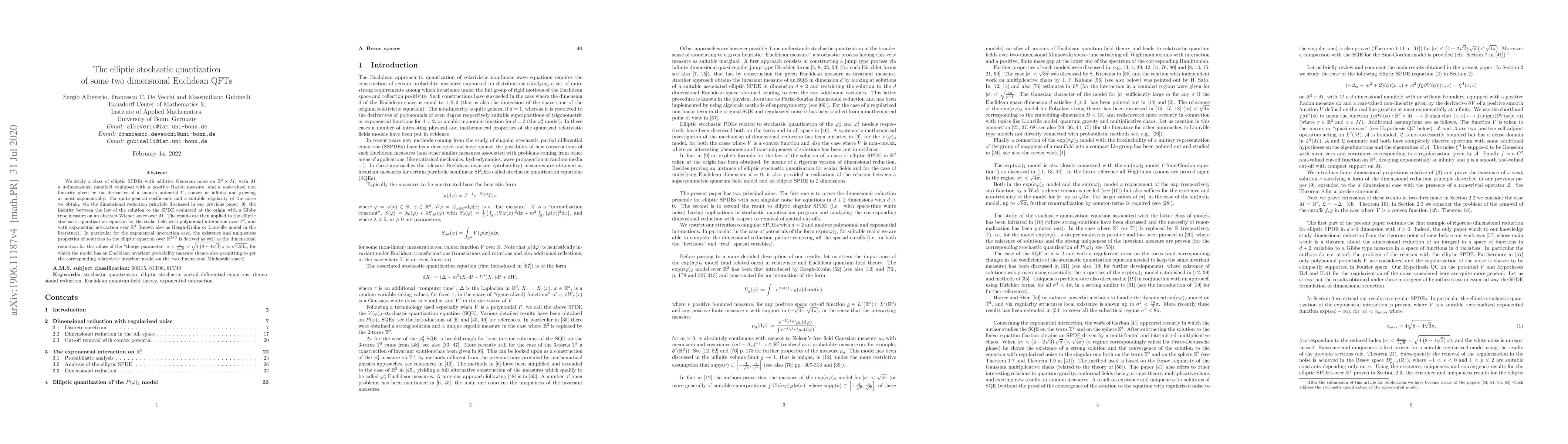 Sergio Albeverio, Francesco C. De Vecchi, Massimiliano Gubinelli et al.