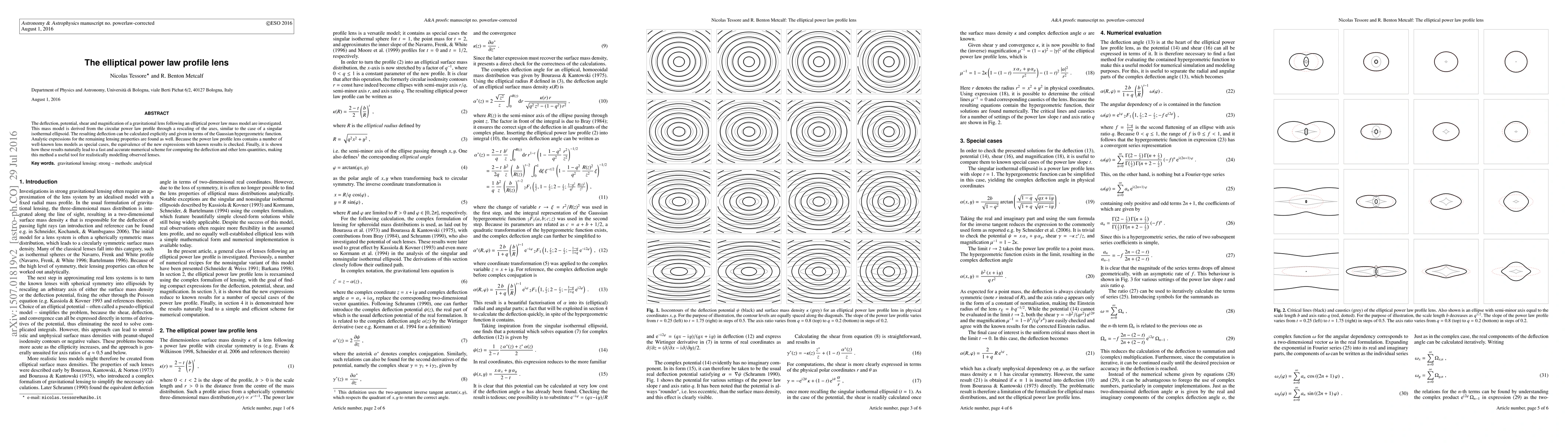The deflection, potential, shear and magnification of a gravitational lens following an elliptical power law mass model are investigated. This mass model is derived from the circular power law profile through a rescaling of the axes, similar to the case of a singular isothermal ellipsoid. The resulting deflection can be calculated explicitly and given in terms of the Gaussian hypergeometric function. Analytic expressions for the remaining lensing properties are found as well. Because the power law profile lens contains a number of well-known lens models as special cases, the equivalence of the new expressions with known results is checked. Finally, it is shown how these results naturally lead to a fast and accurate numerical scheme for computing the deflection and other lens quantities, making this method a useful tool for realistically modelling observed lenses.