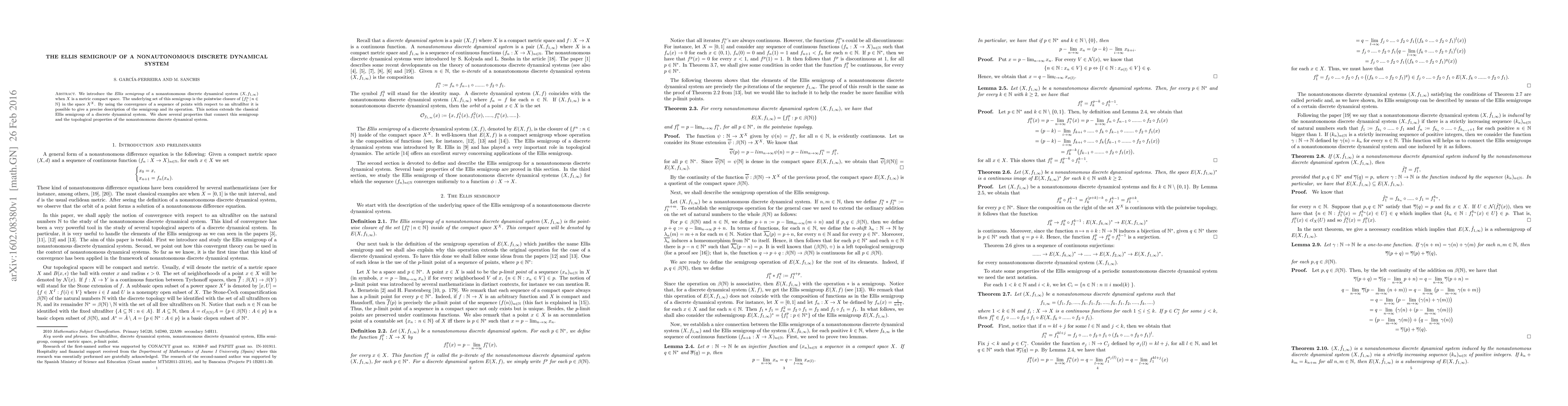 This paper introduces the Ellis semigroup for nonautonomous discrete dynamical systems, extending the classical concept. It describes the semigroup as the pointwise closure of iterates in the space of functions from $X$ to $X$, and uses ultrafilter convergence to detail its properties and connections to the system's topological features.