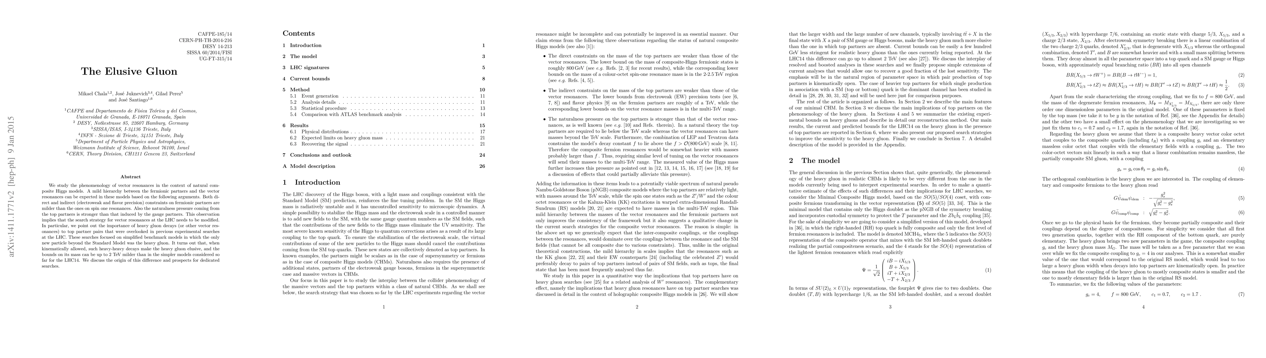 We study the phenomenology of vector resonances in the context of natural composite Higgs models. A mild hierarchy between the fermionic partners and the vector resonances can be expected in these models based on the following arguments. Both direct and indirect (electroweak and flavor precision) constraints on fermionic partners are milder than the ones on spin one resonances. Also the naturalness pressure coming from the top partners is stronger than that induced by the gauge partners. This observation implies that the search strategy for vector resonances at the LHC needs to be modified. In particular, we point out the importance of heavy gluon decays (or other vector resonances) to top partner pairs that were overlooked in previous experimental searches at the LHC. These searches focused on simplified benchmark models in which the only new particle beyond the Standard Model was the heavy gluon. It turns out that, when kinematically allowed, such heavy-heavy decays make the heavy gluon elusive, and the bounds on its mass can be up to 2 TeV milder than in the simpler models considered so far for the LHC14. We discuss the origin of this difference and prospects for dedicated searches.