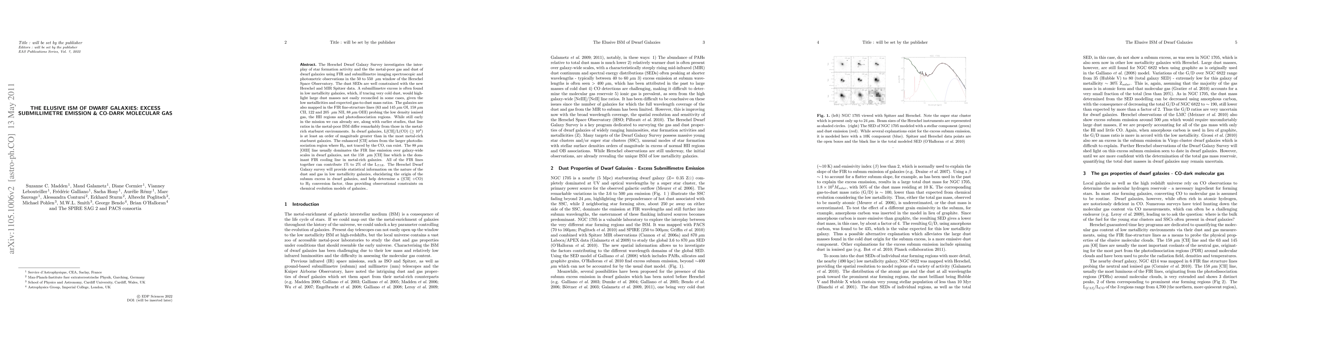 The Herschel Dwarf Galaxy Survey investigates the interplay of star formation activity and the the metal-poor gas and dust of dwarf galaxies using FIR and submillimetre imaging spectroscopic and photometric observations in the 50 to 550mu window of the Herschel Space Observatory. The dust SEDs are well constrained with the new Herschel and MIR Spitzer data. A submillimetre excess is often found in low metallicity galaxies, which,if tracing very cold dust, would highlight large dust masses not easily reconciled in some cases, given the low metallicities and expected gas-to-dust mass ratios. The galaxies are also mapped in the FIR fine-structure lines (63 and 145mu OI, 158mu CII, 122 and 205mu NII, 88mu OIII) probing the low density ionised gas, the HII regions and photodissociation regions. While still early in the Herschel mission we can already see, along with earlier studies, that line ratios in the metal-poor ISM differ remarkably from those in the metal-rich starburst environments. In dwarf galaxies, L[CII]/L(CO) (>10^4) is at least an order of magnitude greater than in the most metal-rich starburst galaxies. The enhanced [CII] arises from the larger photodissociation region where H2, not traced by the CO, can exist. The 88mu [OIII] line usually dominates the FIR line emission over galaxy-wide scales in dwarf galaxies, not the 158mu [CII] line which is the dominant FIR cooling line in metal-rich galaxies. All of the FIR lines together can contribute 1% to 2% of the L(TIR). The Herschel Dwarf Galaxy survey will provide statistical information on the nature of the dust and gas in low metallicity galaxies, elucidating the origin of the submm excess in dwarf galaxies, and help determine a ([CII] +CO) to H2 conversion factor, thus providing observational constraints on chemical evolution models of galaxies.