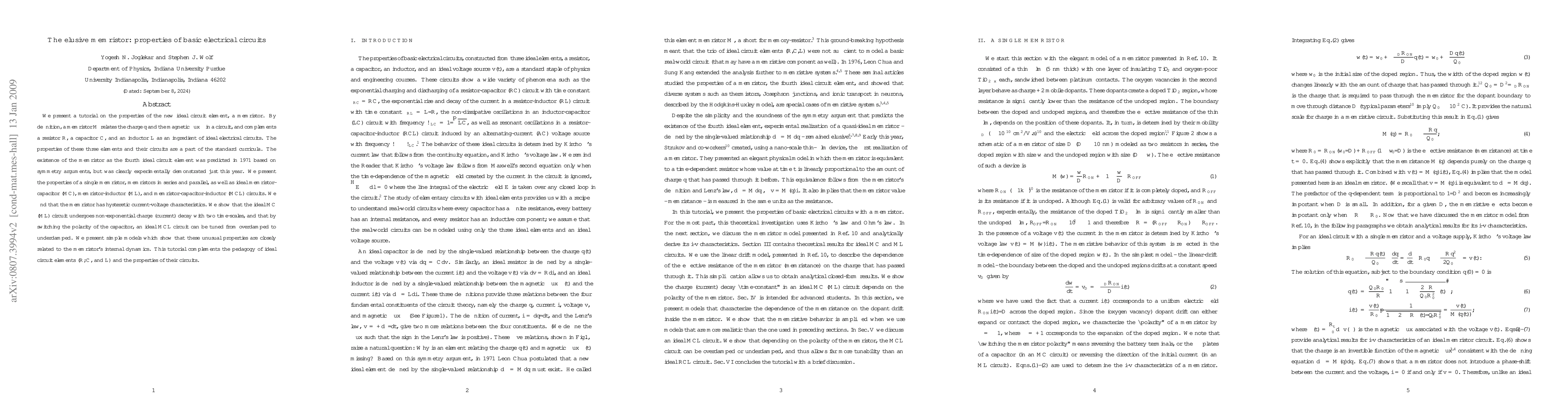 This paper provides a tutorial on the memristor, the fourth ideal circuit element, which relates charge and magnetic flux. It explores the properties of memristors in various configurations and their impact on circuits, highlighting hysteretic current-voltage characteristics and non-exponential decay behaviors in memristor-capacitor and memristor-inductor circuits.