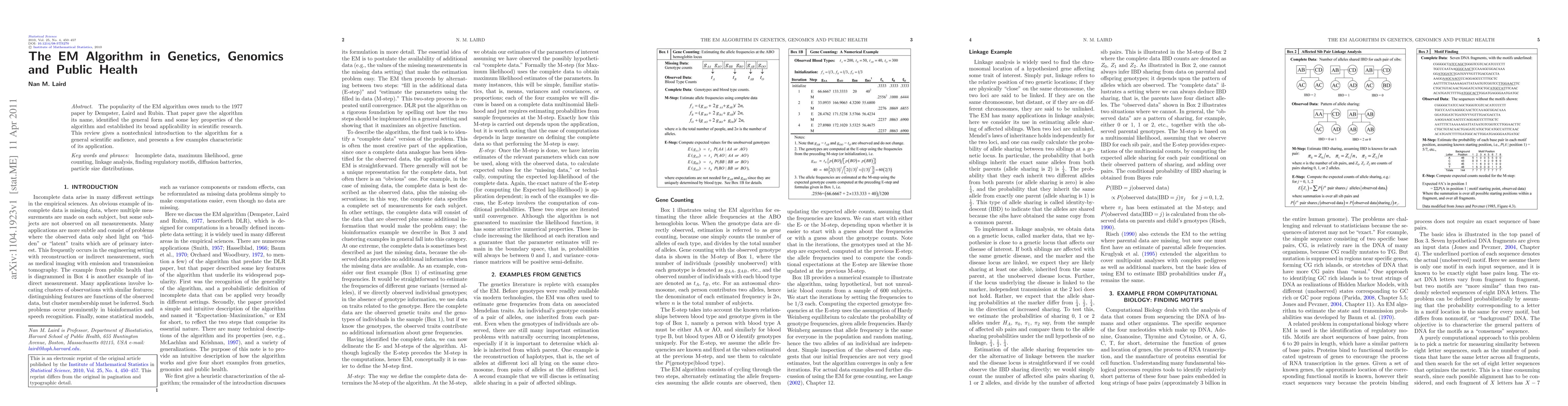 The popularity of the EM algorithm owes much to the 1977 paper by Dempster, Laird and Rubin. That paper gave the algorithm its name, identified the general form and some key properties of the algorithm and established its broad applicability in scientific research. This review gives a nontechnical introduction to the algorithm for a general scientific audience, and presents a few examples characteristic of its application.